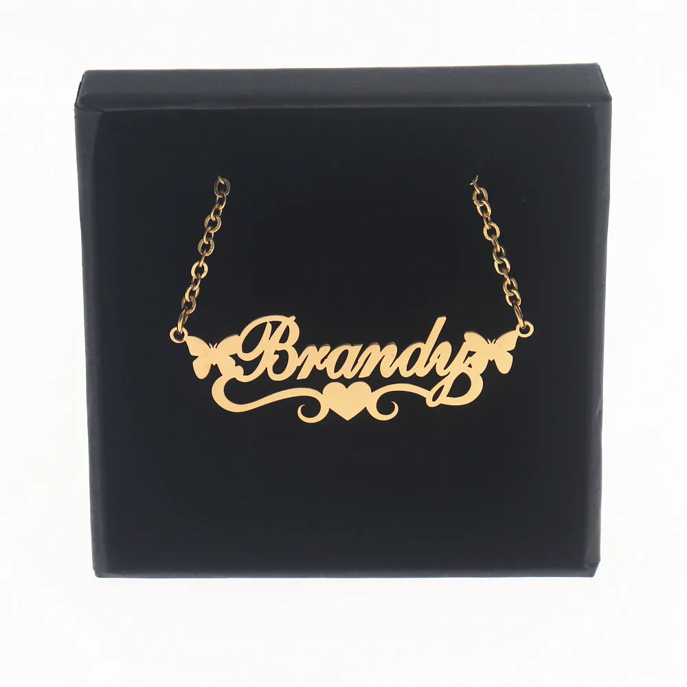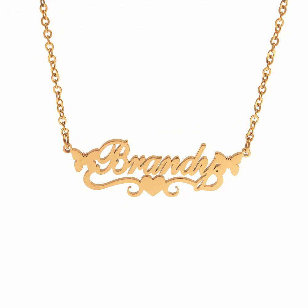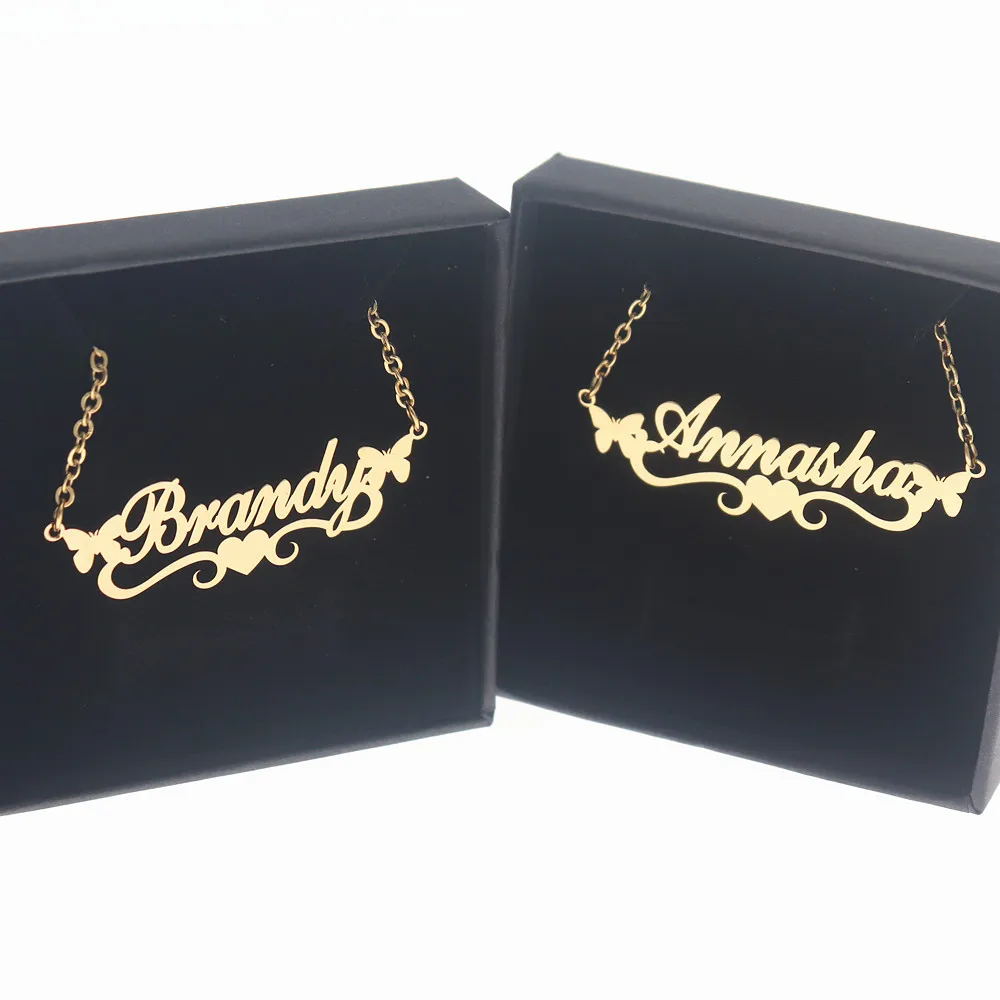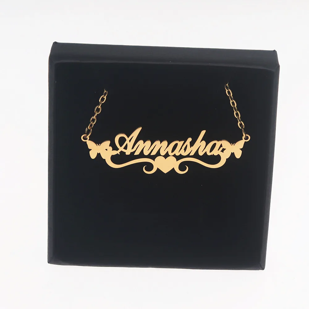 Ожерелье с именем короны и подвеской в форме сердца, чокер с именем на заказ, женское ожерелье из нержавеющей стали, золотое ожерелье с индивидуальной табличкой