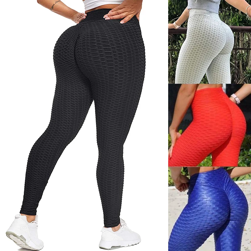 Женские брюки для йоги с высокой талией, подтяжки живота, леггинсы, текстурированные штаны для йоги