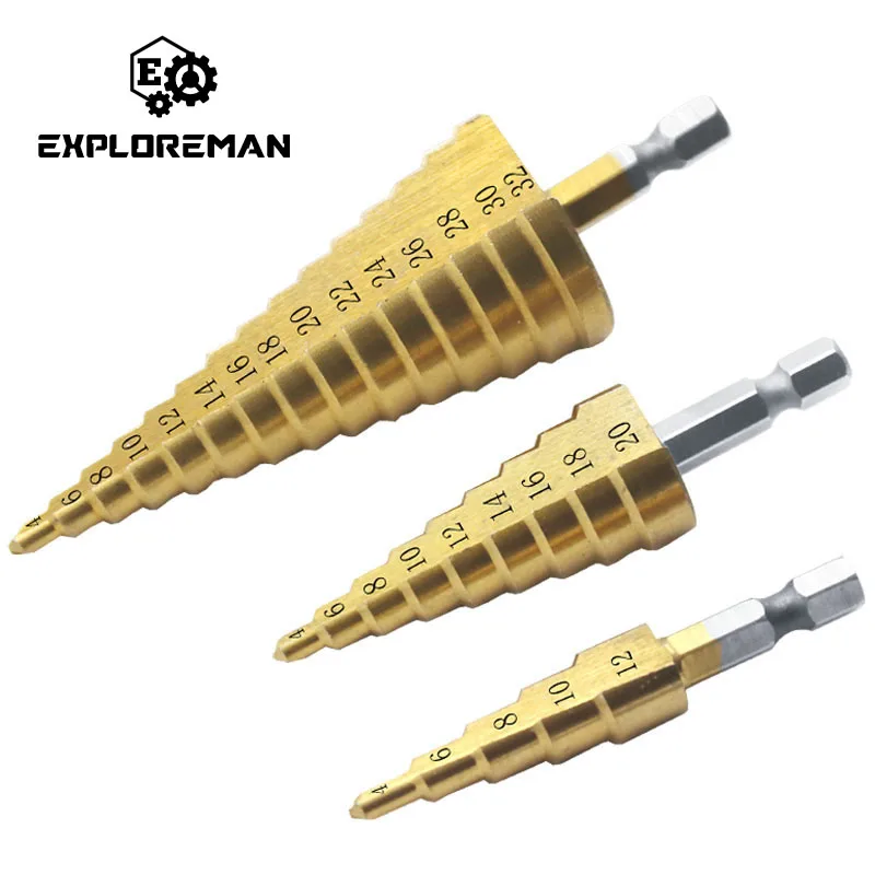 Ступенчатое сверло из быстрорежущей стали, 3-12 мм 4-12 мм 4-20 мм, с прямым желобом, с титановым покрытием, для дерева и металла, электроинструменты для сверления сердечника