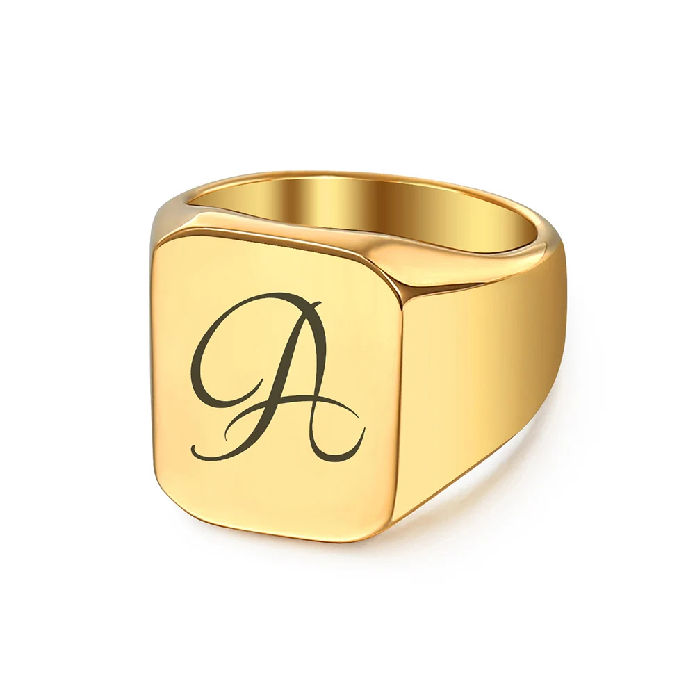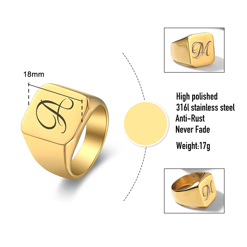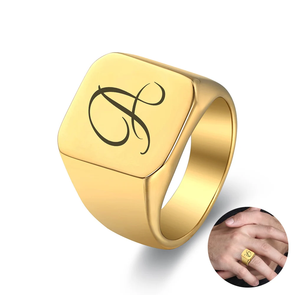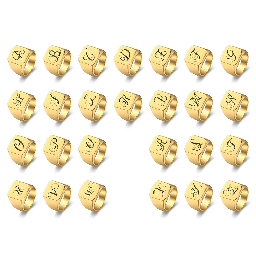 Письмо начальный штамп кольца для мужчин и женщин из нержавеющей стали золотой цвет индивидуальные гравированные ювелирные Кольца Подарочные новые LHR447