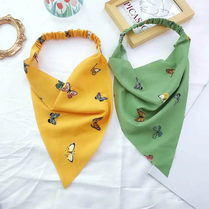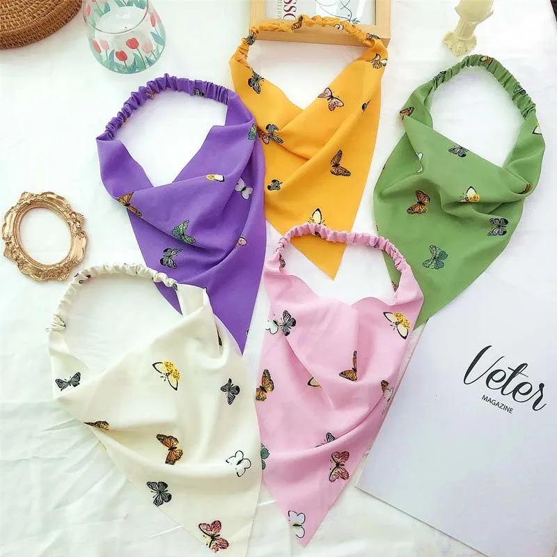 Повязка для волос женская с принтом, бандана детская, треугольная, эластичная лента для волос, повязка с изображением цветов, аксессуары для волос