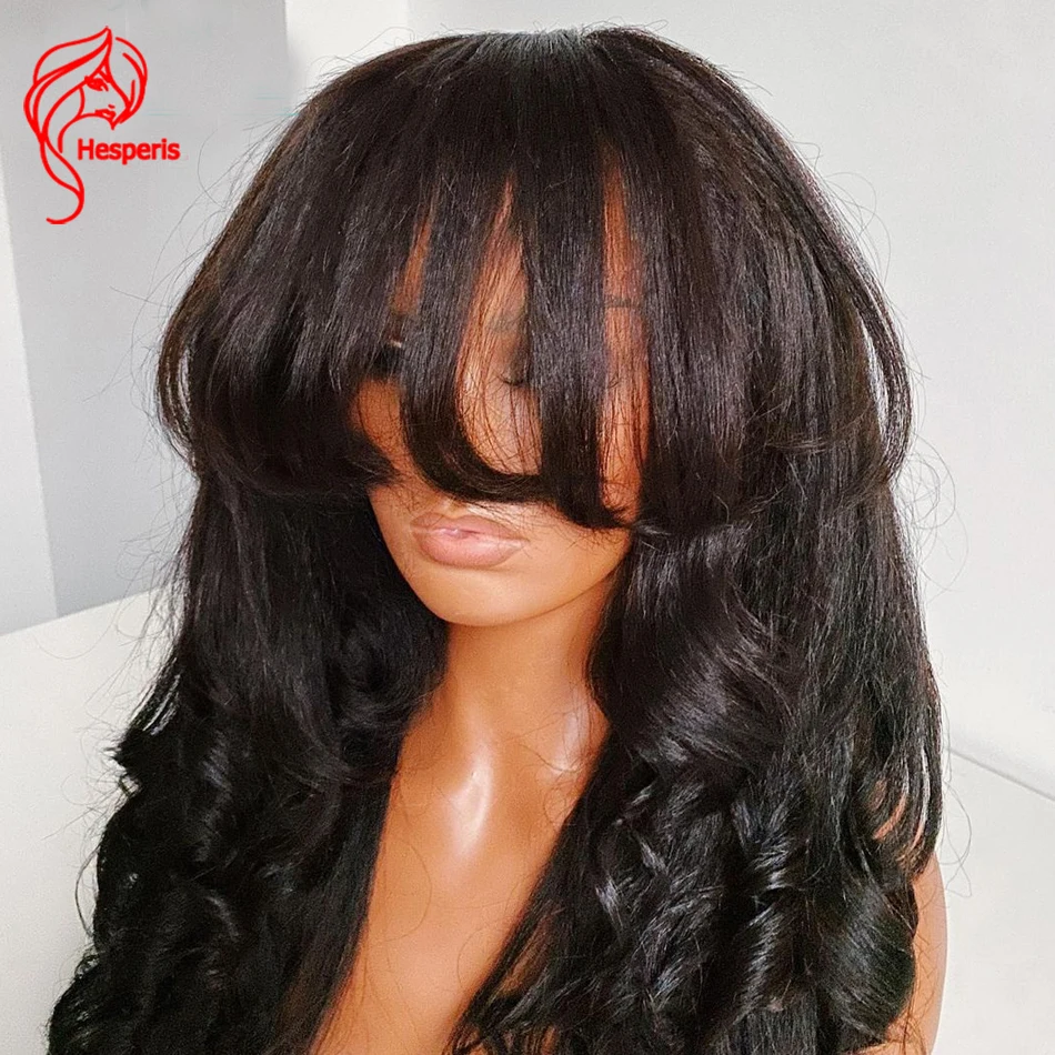 Hesperis 200 плотные волнистые человеческие волосы Yaki, парики с челкой, бразильские волосы без повреждений, полноразмерные волосы для чернокожих женщин