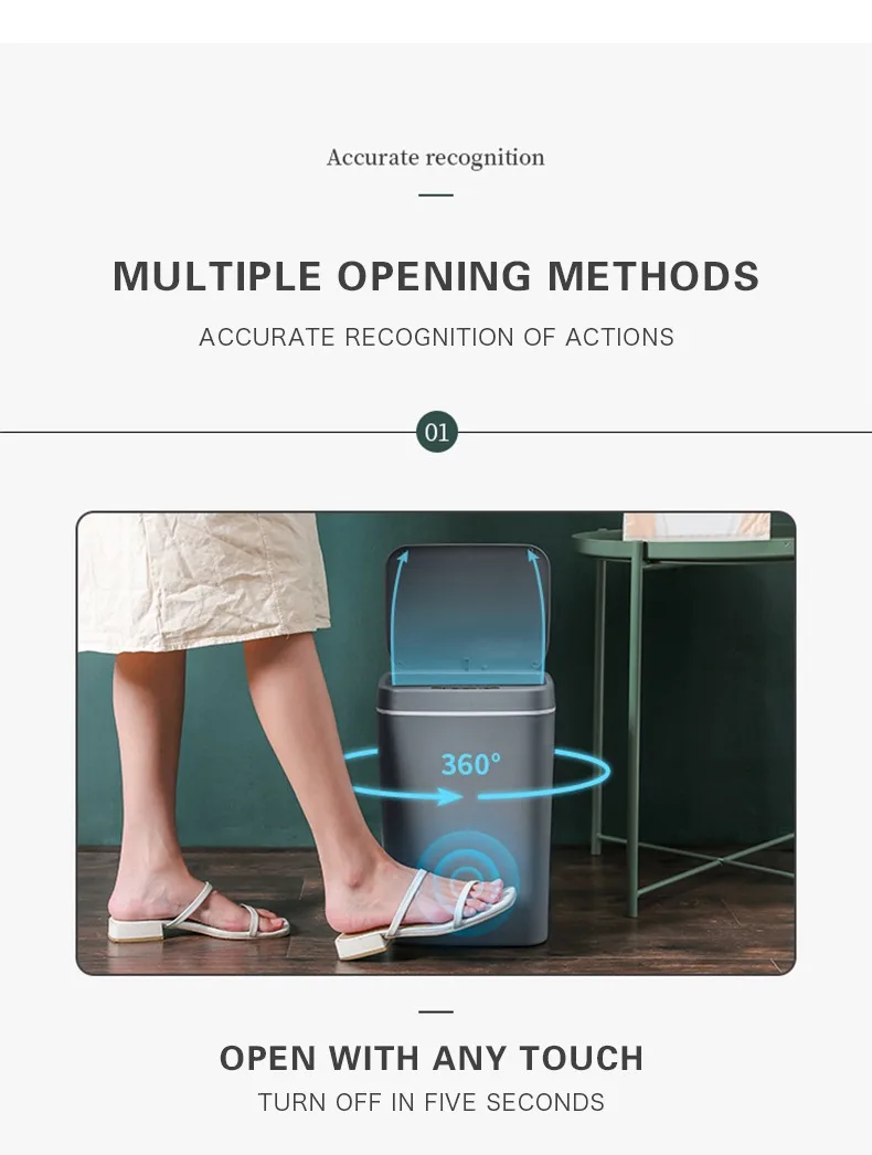 Умное мусорное ведро с датчиком, 16 л, водонепроницаемое мусорное ведро для ванной, перезаряжаемое, для кухни, гостиной, аксессуары для ванной комнаты