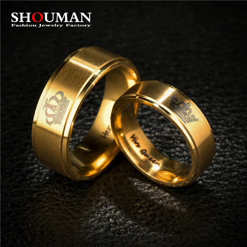 SHOUMAN золотистая Корона короны короля королевы парные кольца из нержавеющей стали для влюбленных обещает мужчинам женщинам мужчинам подарок на день Святого Валентина