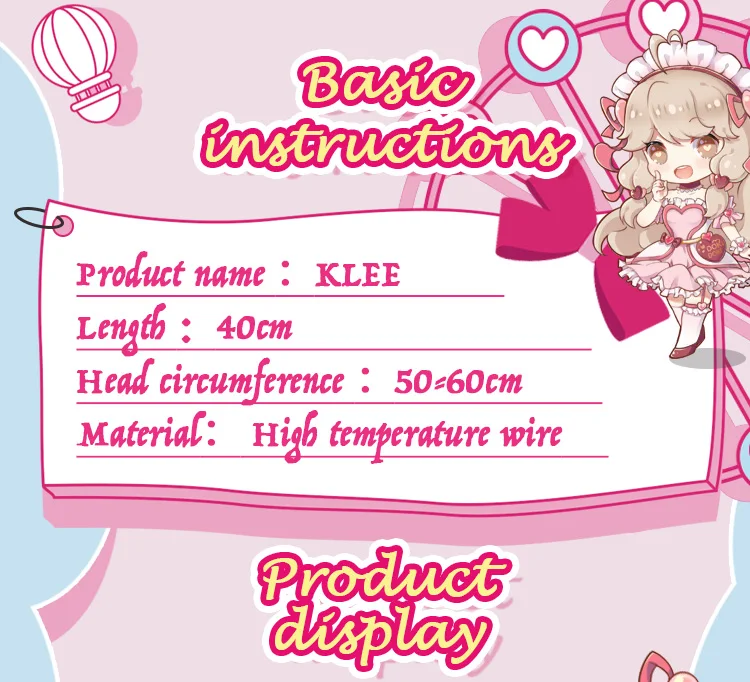Парик для косплея Klee Impact из Игры дженшина на Хэллоуин, с ушами