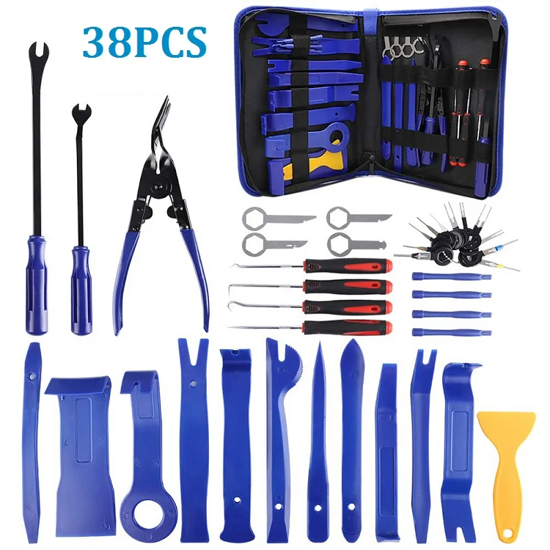 Особенности: Область применения -Автомобильные Стерео инструменты для демонтажа стерео. Идеально подходит для установки и снятия автомобильной отделки дверей и окон, молдинги, панели, эмблемы и аналогичные фитинги, зажимы. Подходит для вкладышей, приборной таблицы, приборной консоли, зоны управления аудио. -Защита от царапин и экономии времени -Набор инструментов подходит для любой модели автомобиля, это может уменьшить возможность истирания внутреннего украшения автомобиля. С дизайном уникального Анти-Царапины и экономии времени. -Все виды инструментов, которые отвечают вашим потребностям. Различные формы пластиковых углов могут работать для большинства кромок и сложных кривых. -Этот набор инструментов является обязательным для любителей автомобилей, и он имеет возможность рассеивать и ремонтировать стерео автомобили, прост в использовании. -Набор инструментов изготовлен из высококачественного пластика и металлического материала, практичен, прост в использовании и переноске, имеет длительный срок службы. Спецификация: Количество: 7/19/38 шт Материал: полипропилен + помпон Цвет: как показано