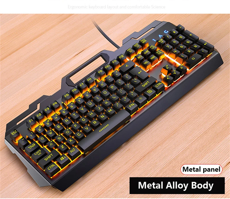 Игровая клавиатура и мышь, игровой полноразмерный, 104 клавиши, механическая подсветка RGB, USB, проводной, для игрового ПК, ноутбука, компьютера