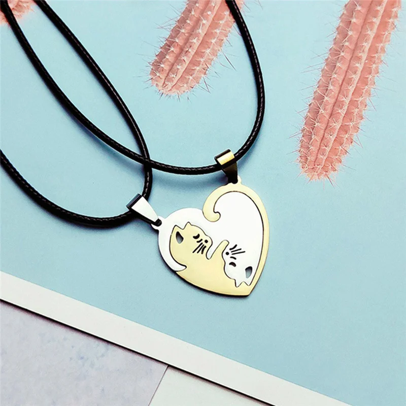 1 пара, ожерелье для влюбленных пар в виде кота из нержавеющей стал...