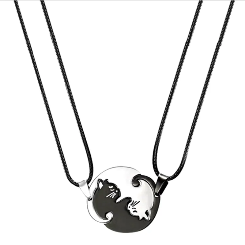Винтажные пары ювелирные изделия ожерелья черный белый пара ожерелье Классический Инь Ян король животное кошка кулон ожерелье