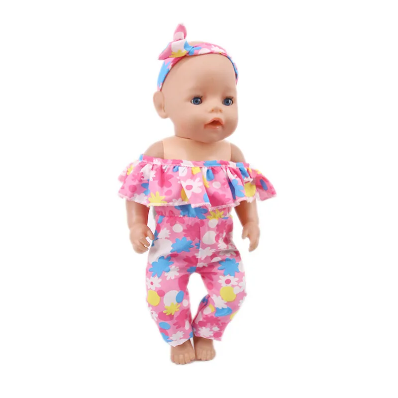 Кукольный комбинезон + повязка на голову с принтом Фламингоананаса, подходит для куклы америкны диаметром 18 дюймов 43 см, аксессуары для новорожденных, наше поколение
