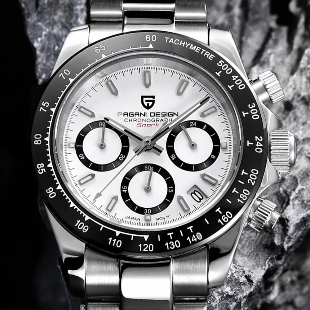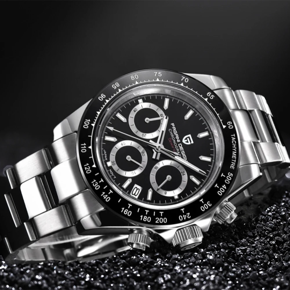 Часы PAGANI Мужские кварцевые с хронографом и секундомером, модные брендовые водонепроницаемые, с керамической рамкой, из нержавеющей стали