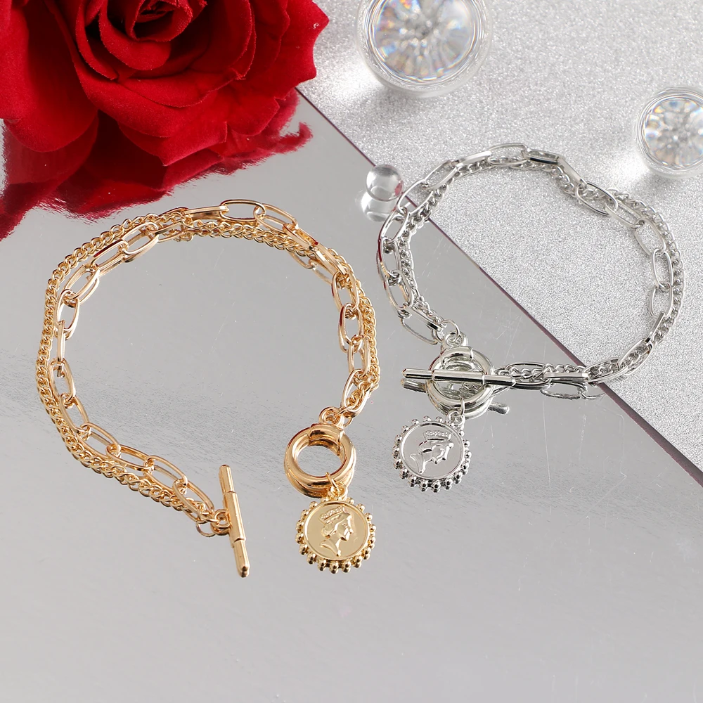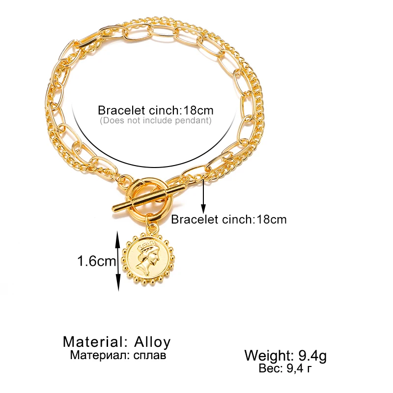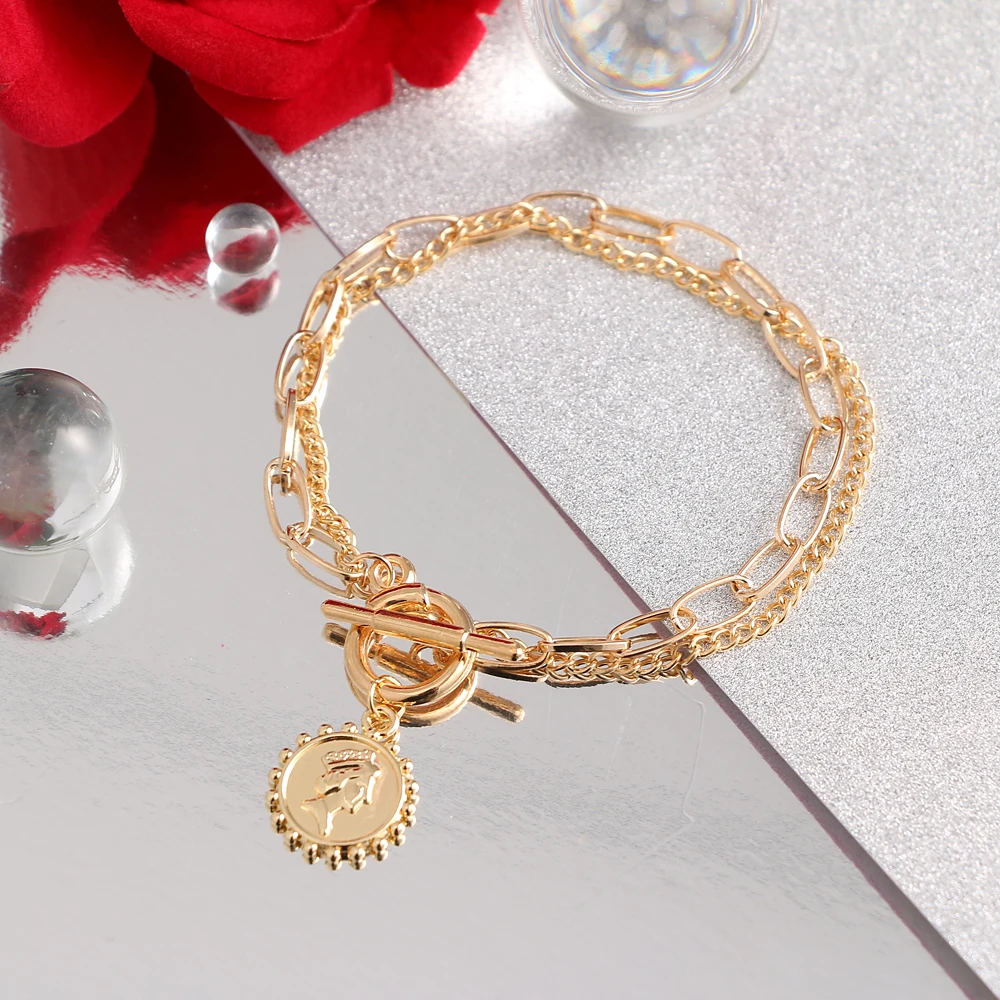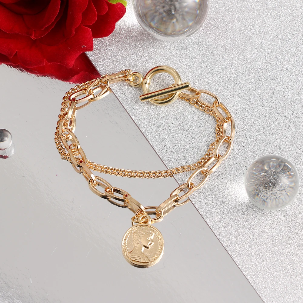 Браслеты ZOVOLI Многослойные женские, винтажные ювелирные украшения из сплава в стиле панкхип-хоп с резным портретом монетыцепочки в богемном стиле с подвеской-крестом