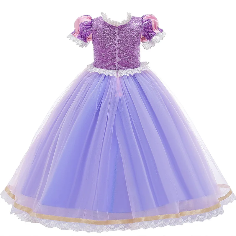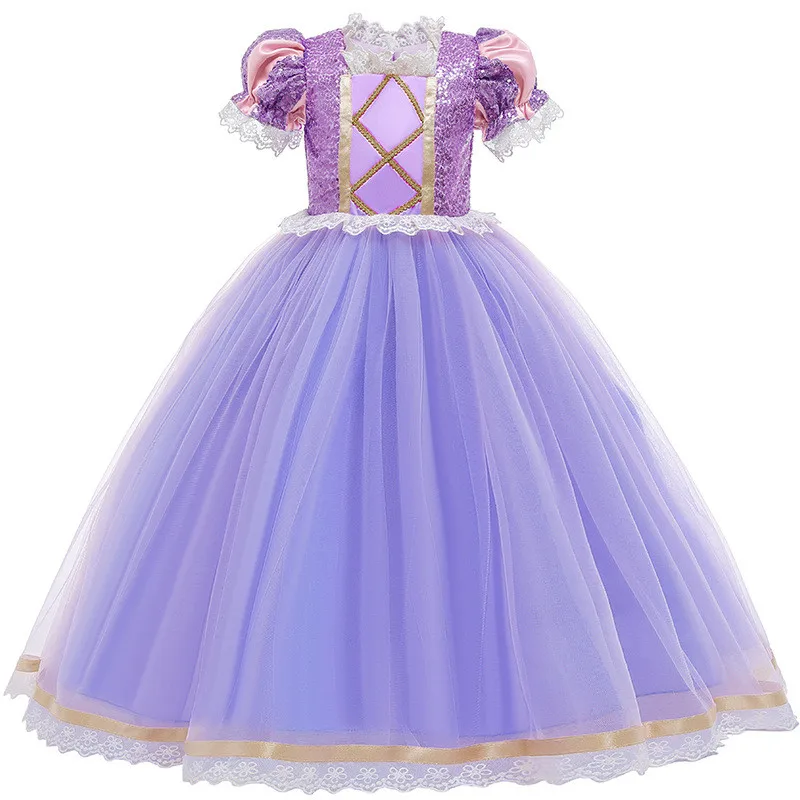 Платье для девочек в стиле Рапунцель Костюм принцессы для косплевечерние маскарадный фиолетовый роскошный спутанный костюм для Хэллоуина платье Софии для девочек