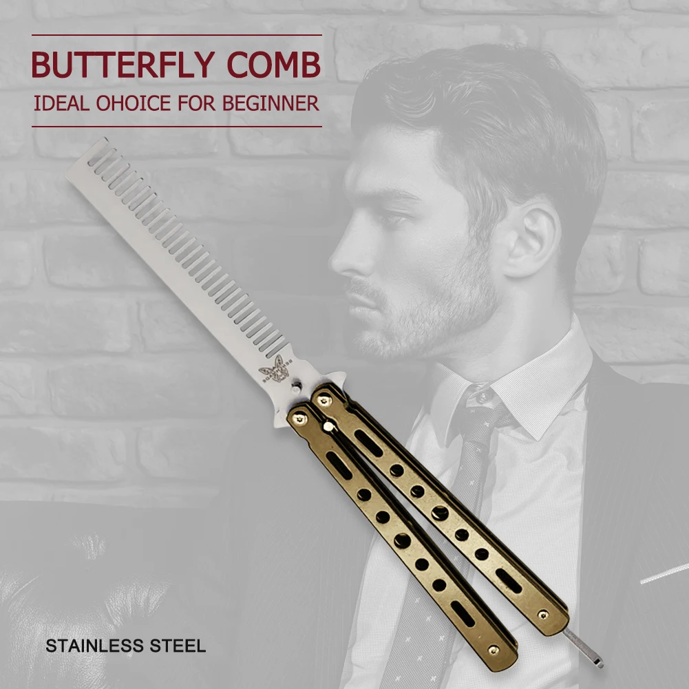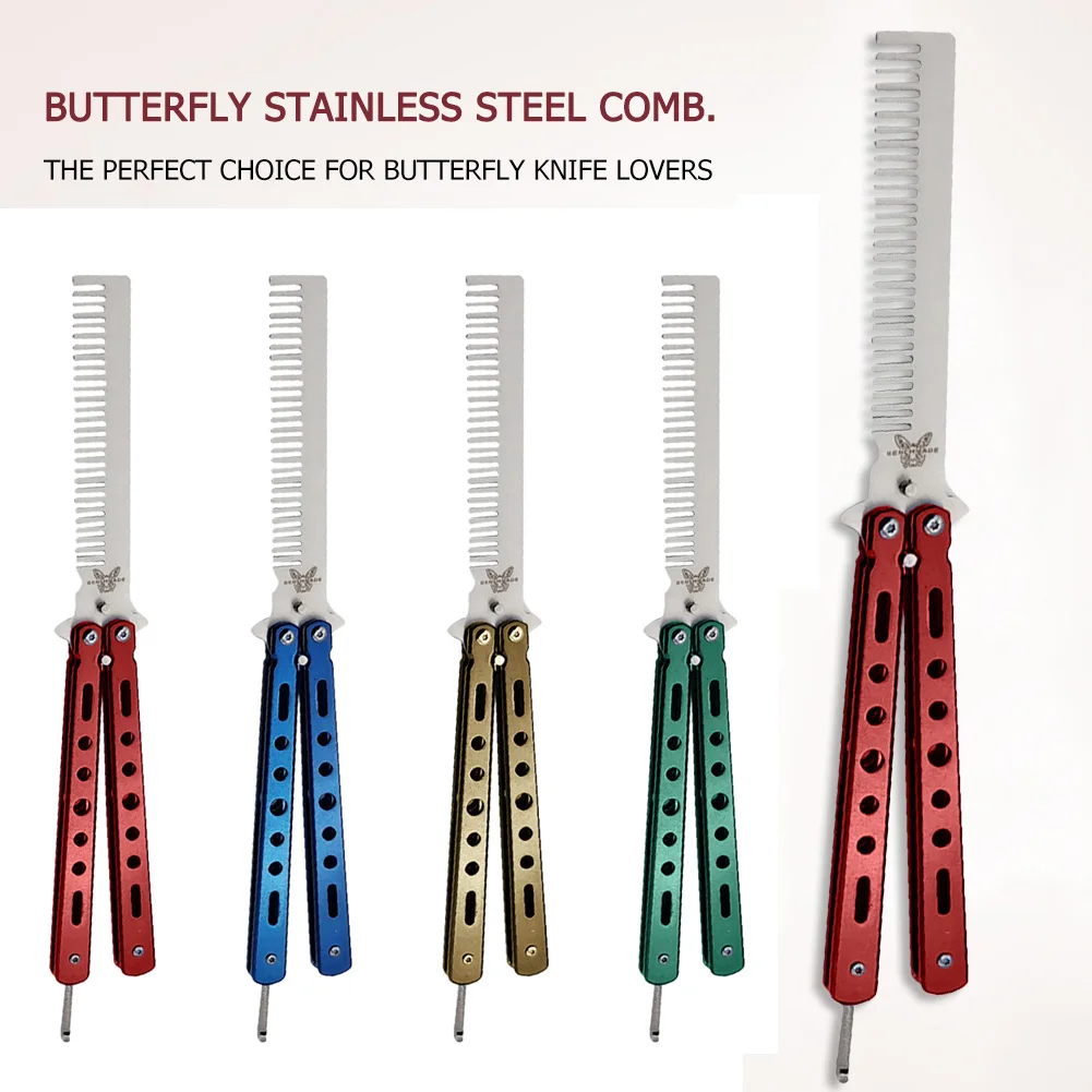 Расческа из нержавеющей стали с бабочкой. Идеально подходит для любителей ножей-бабочек. Вы можете практиковаться без вреда для здоровья.