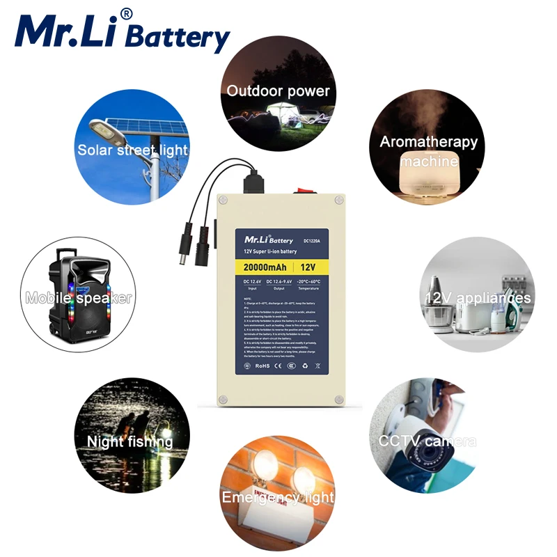 Аккумуляторная батарея Mr.Li 12 В 20 Ач, 18650 комплект литий-ионный батарей, для хранения энергии, бытовая техника, рыболокатор с зарядным устройством 2A