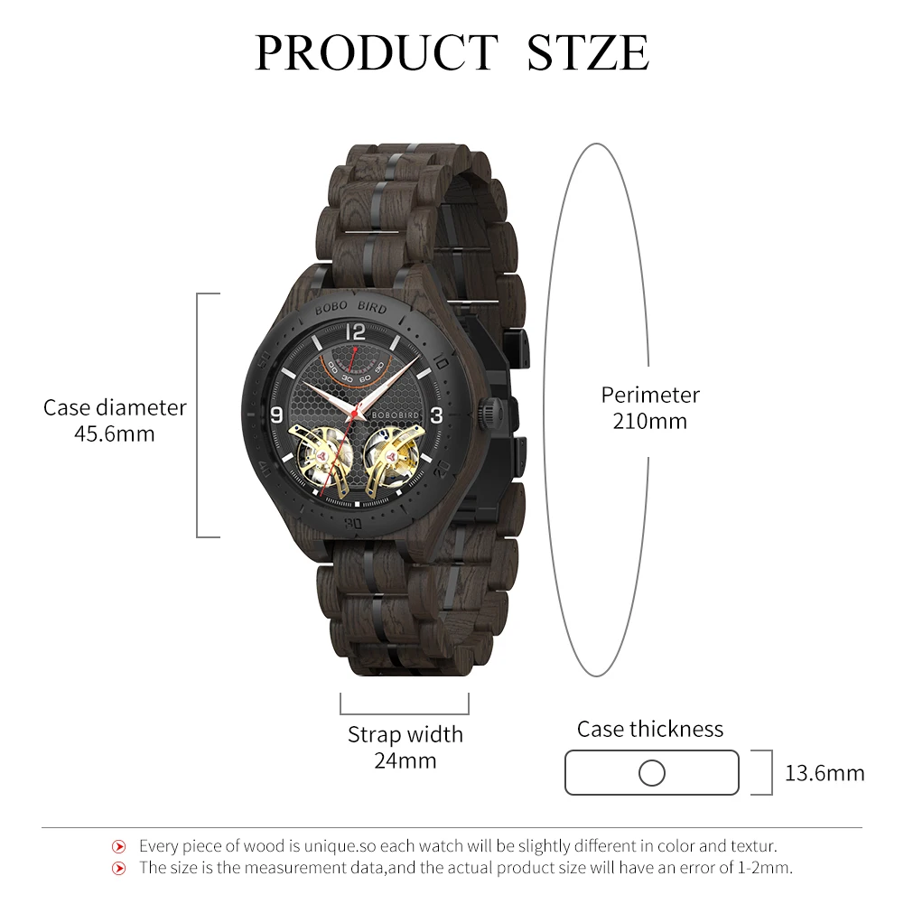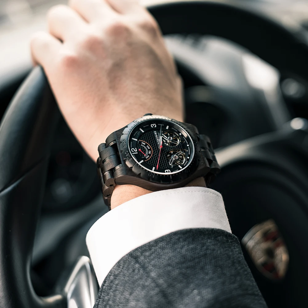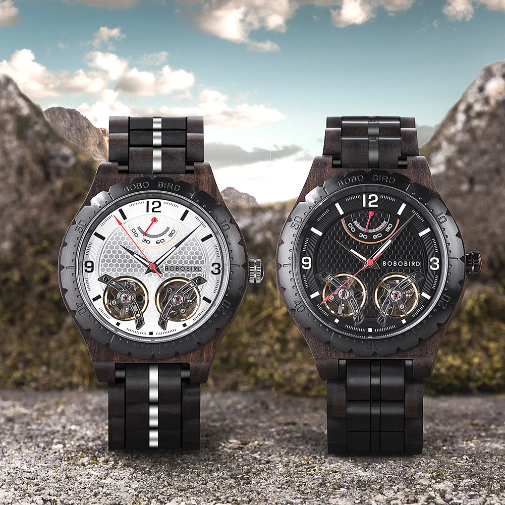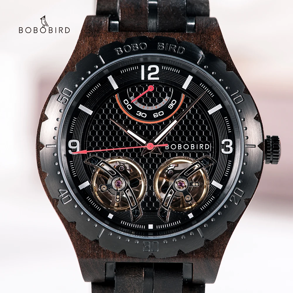 Мужские автоматические механические часы BOBO BIRD, Роскошные наручные часы с хронографом из нержавеющей стали, в подарочной коробке