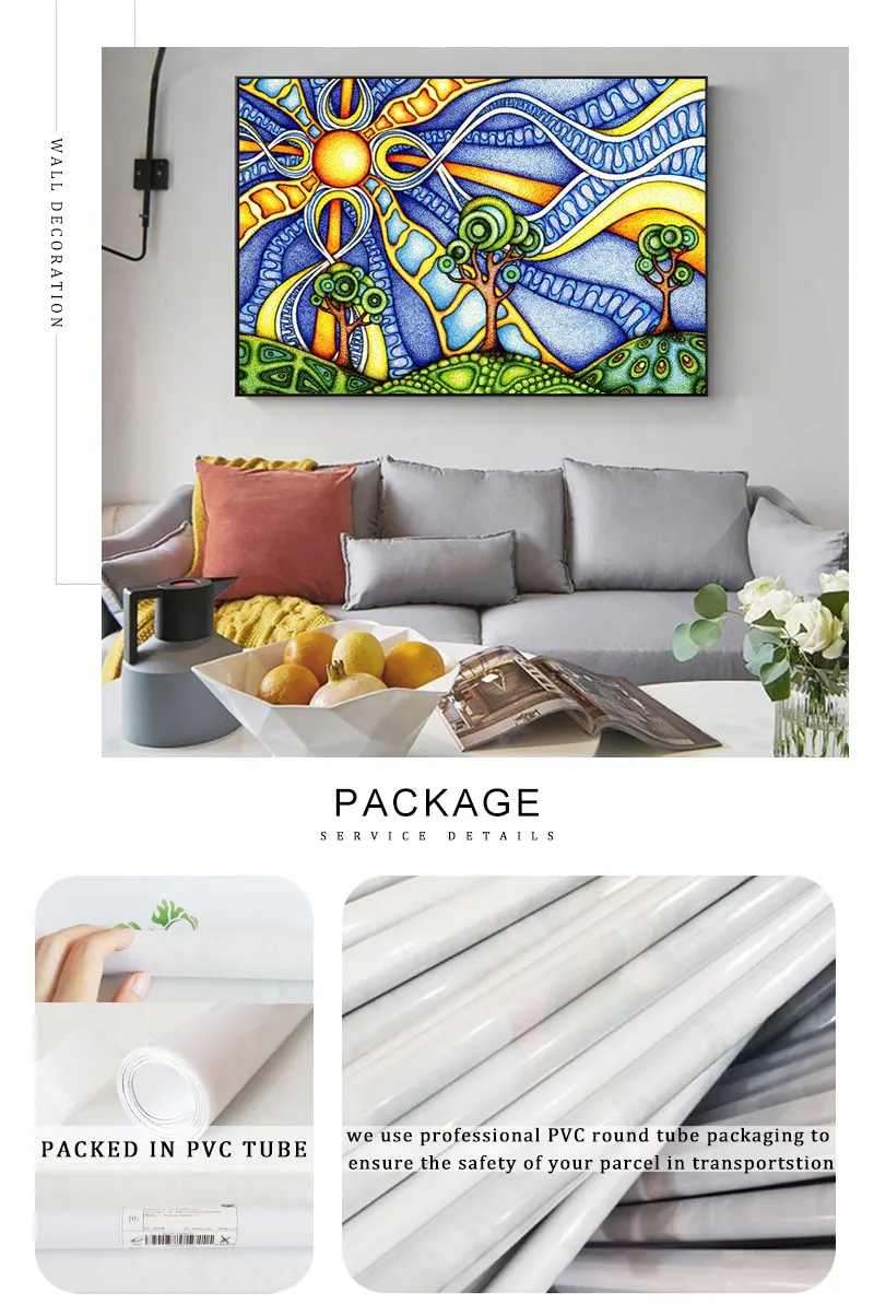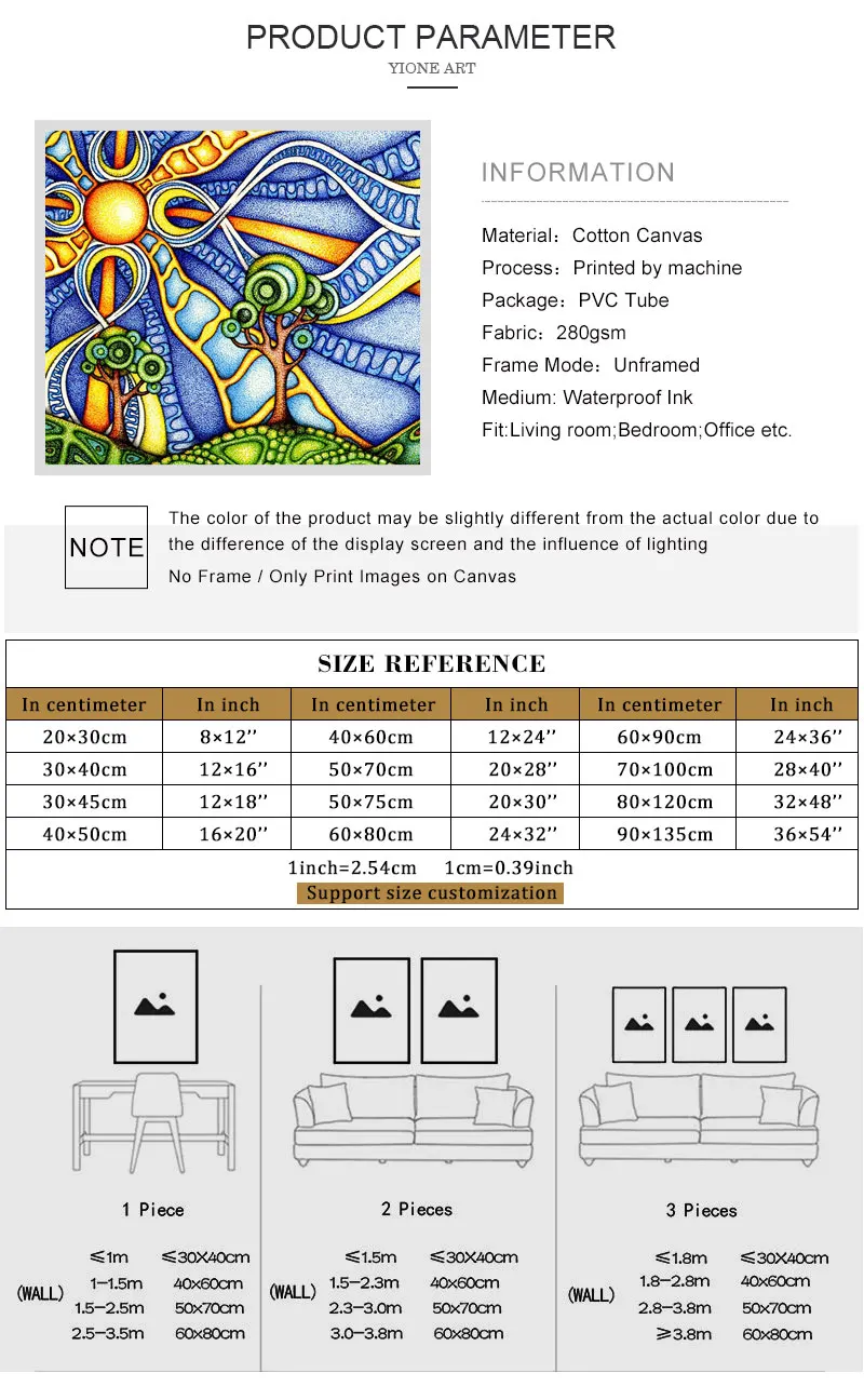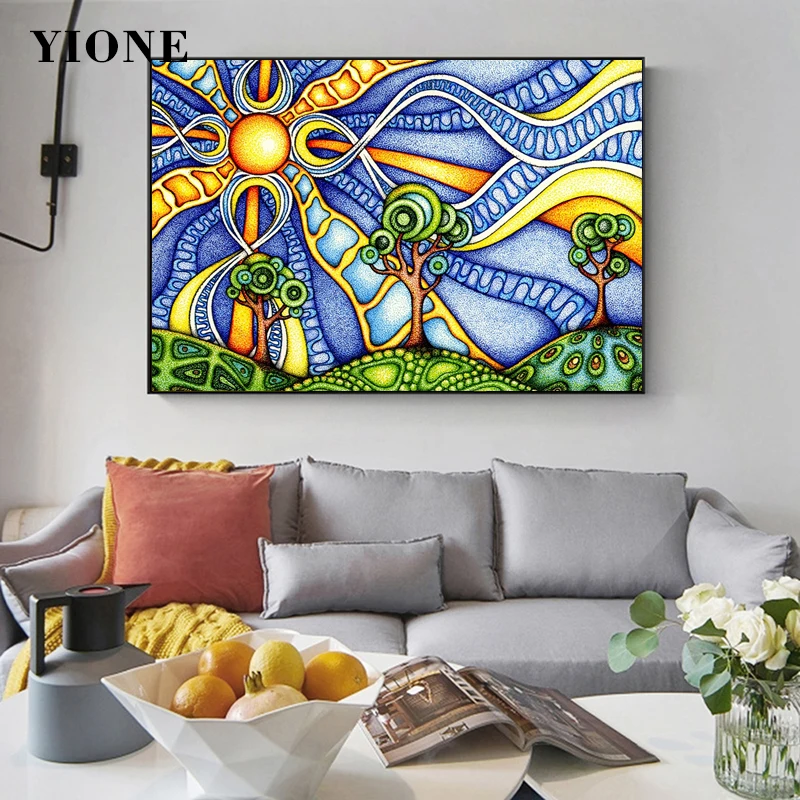 Абстрактное искусство, пейзаж, живопись, красочный психоделический солнце, дерево, небо, холст, картина, печать, настенный постер для гостиной, коридора, Декор
