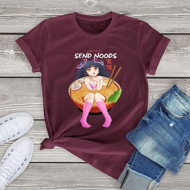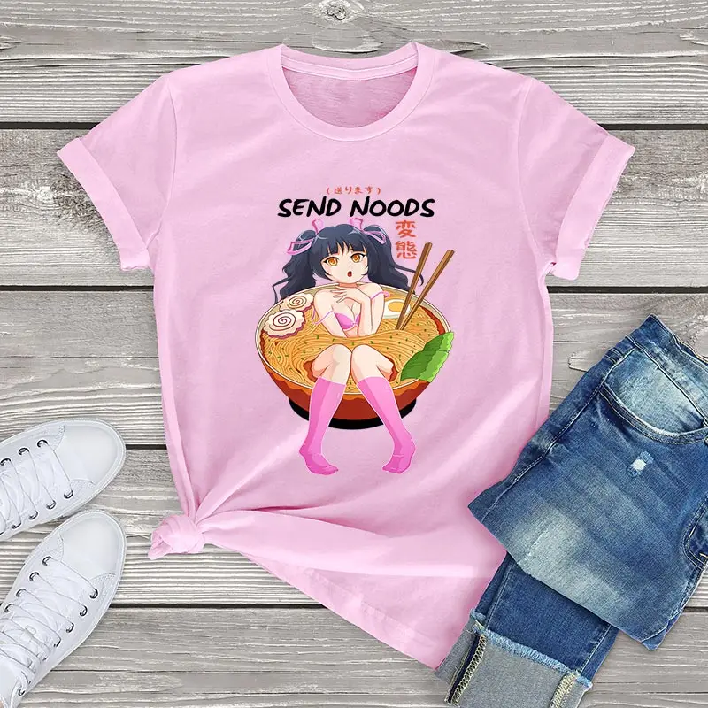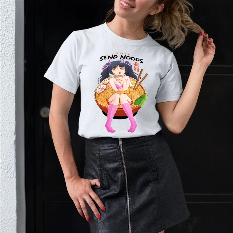 100 хлопок отправить Noods Футболка женская одежда лето 2021 Ramen Noodle чаша сябу аниме отаку унисекс», Очаровательная белая рубашка для мужчин модные женские топы больших размеров уличная 3xl