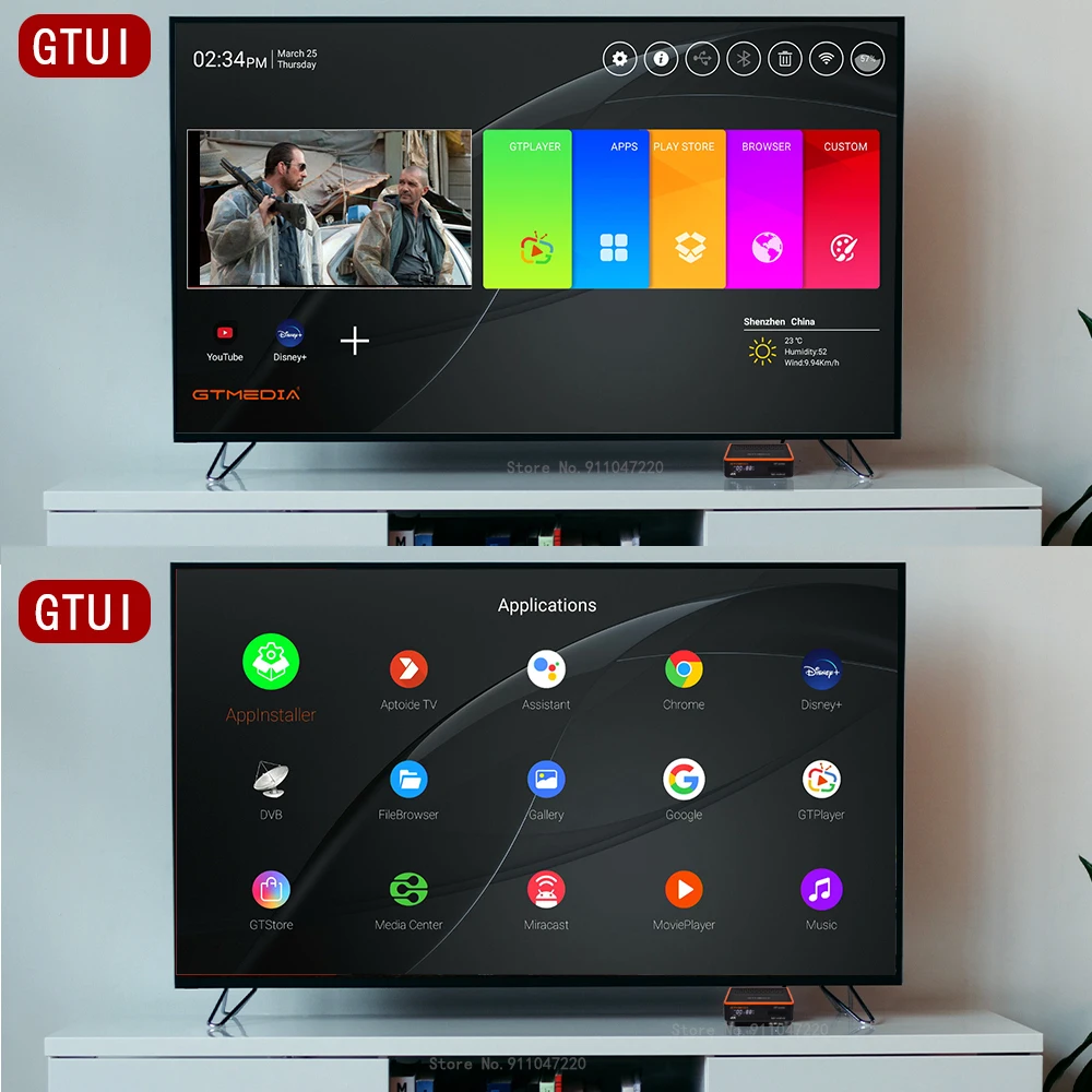 Android 9.0 TV BOX + DVB-S/S2/S2X,DVB + T/T2/Cable/ATSC-C(J.83B)/ISDBT, AVS + HEVC main 10 profile(10 бит),AUTO BISS,T2MI,GTFeeds,YUV422,Gtshare"Amlogic S905X3 2GBRAM + 16GBROMПоддержка 4K ультра-высокой четкости дисплея и декодера, двухъядерный процессор MIPS75Kf;Поддержка Unicable, DiSEqC1.0/1,1/1,2/USALS мотор полностью поддерживает;Поддержка полного ключа PowerVu, DRE & Biss; AUTO BISSВстроенный Wifi 2,4G/5G + BT4.1, 802.1.1b/g/n/acСистема является GT UI, GTStore Addons предустановленной.Netflix, Youtube, Prime-Video, Disney Plus, онлайн-фильмы и т. Д.Поддержка SAT2 IP, GTshare APP