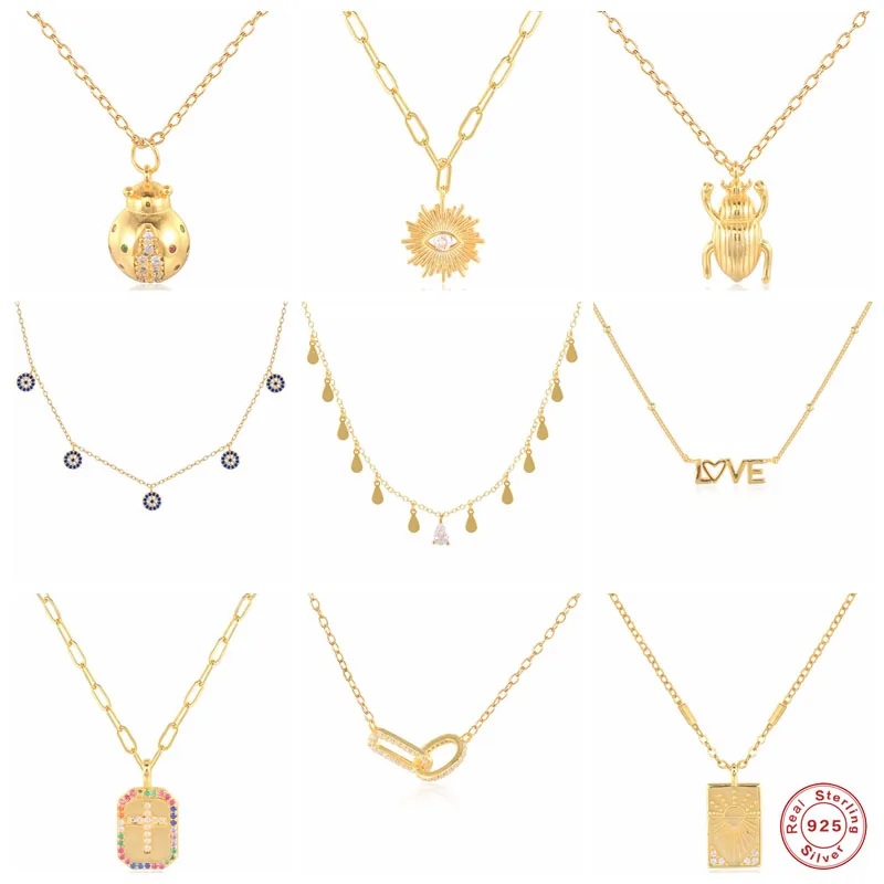 GS 925 пробы серебра в форме капли воды циркон любовь подвески роскошные прямоугольник Очаровательная Божья коровка пижамы толстая цепочка колье, ювелирные изделия