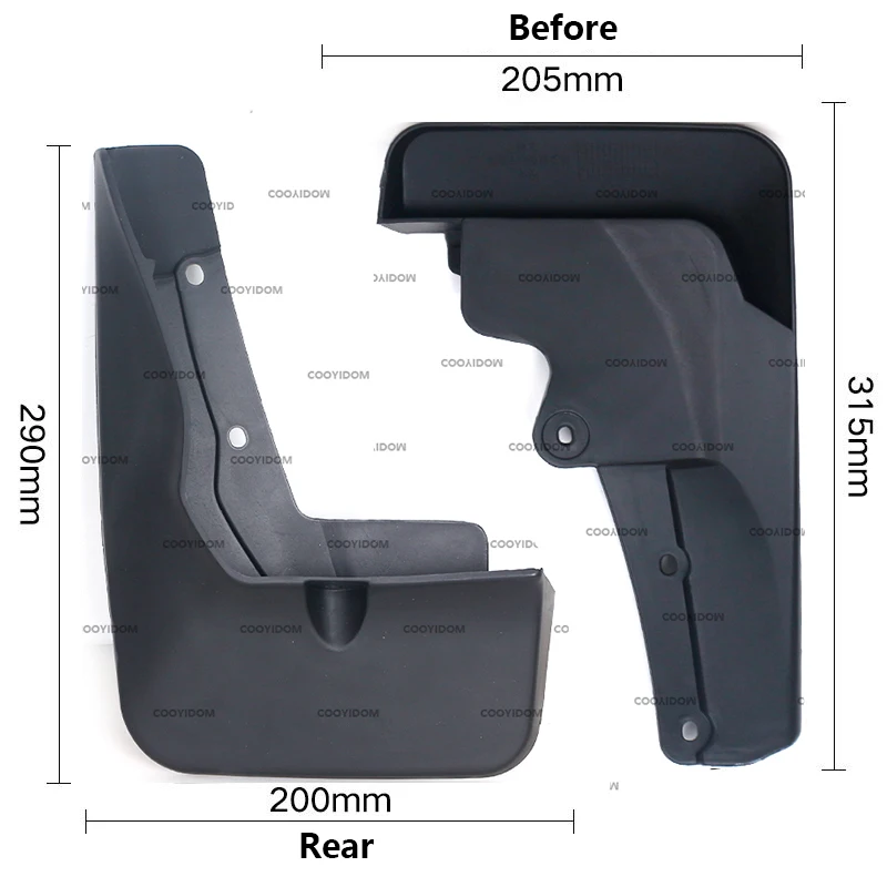 Размер изделия: переднее колесо 205 мм * 315 мм заднее колесо 200 мм * 290 ммВес нетто продукта: 0,62 кгВес брутто: 0,79 кгАксессуары для продукта: винты, упаковочная коробка, Набор крыльев (4 шт.)Цвет изделия: черныйХарактеристики материала: ПП мягкий пластикПроцесс продукта: оригинальный автомобильный компрессионный формовочный материалМесто установки: передние и задние колеса