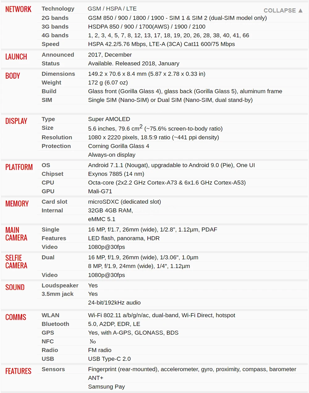 Модель SamsungГалактика A8