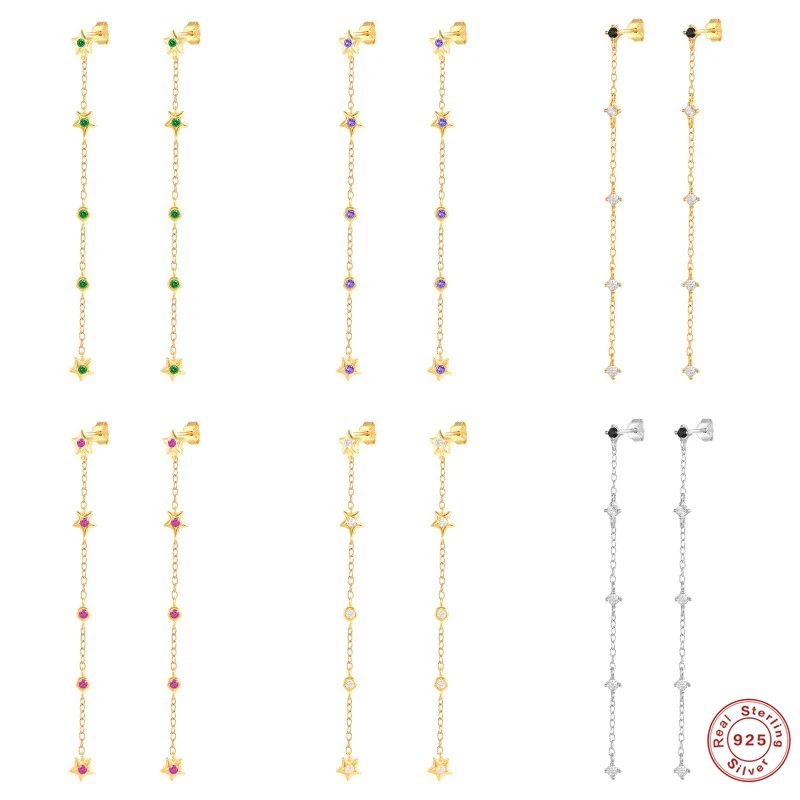 Автоклав из нержавеющей стали с длинной S925 стерлингового серебра мини серьги с подвесками в виде звезд из серьги со шпилькой, для женщин, влюбленных CZ Для Пирсинга Ушей, украшения для свадьбы