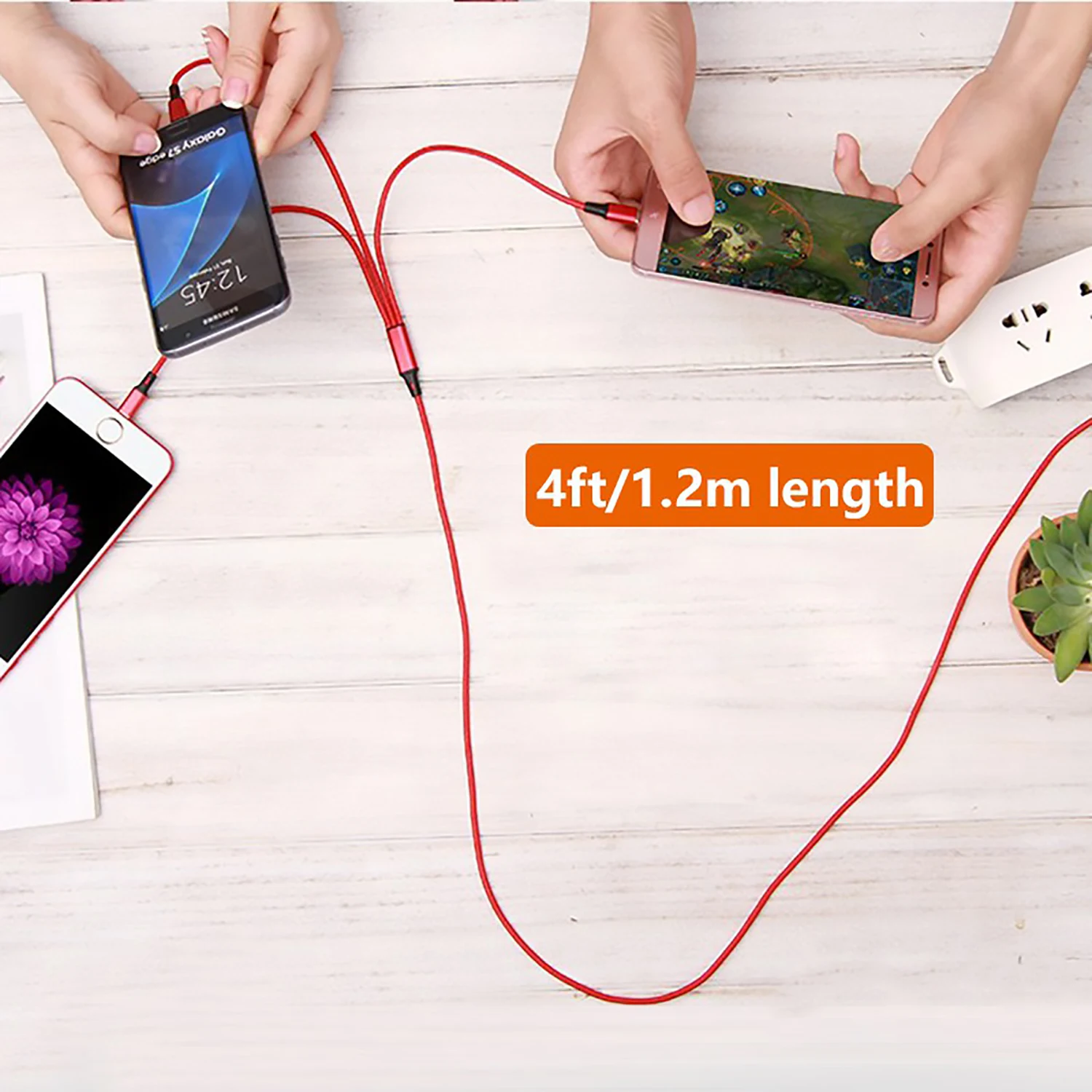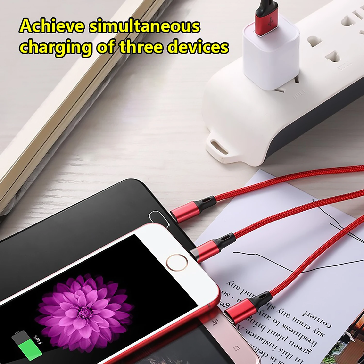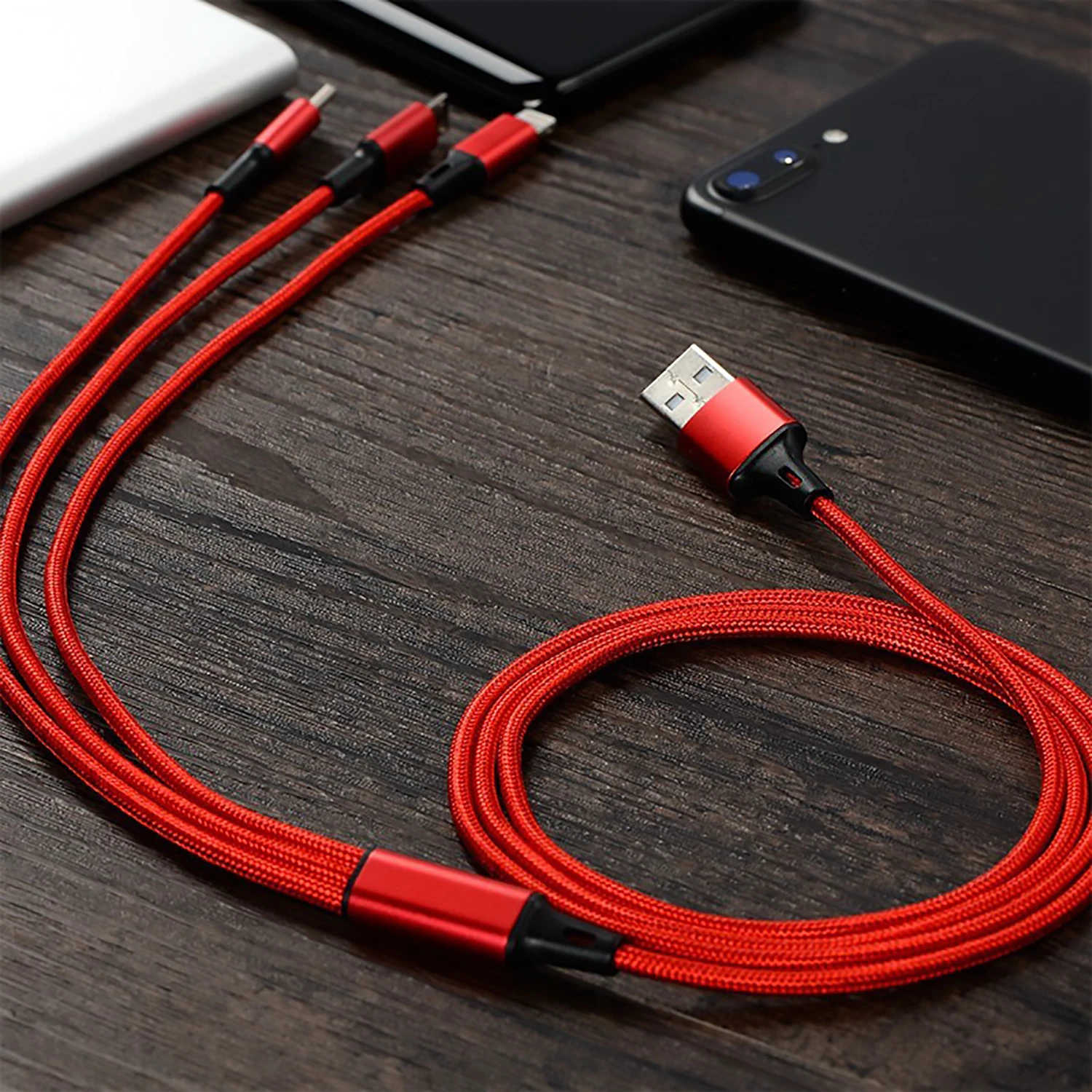 Стиль: 3 в 1.Материал: алюминиевый сплав + подготовленный нейлон.Длина: 1,2 м.Стиль: Модный и простой досуг.Применимая Модель: Apple/Android/Type-C.Цвет: красный, синий, серебристый, черный.Провод изготовлен из ПВХ-сырья, а нейлоновый шнур снаружи сплетен. Износостойкий внешний вид не завязывается. Внешний диаметр проволоки-3,3 мм.Качественный материал для терминалов данных Android, контакт стабильный и долговечный, Apple data line с 5 интегрированными терминалами из материала, совместимый с поддержкой обновления, не воспроизводит окно, зарядка и стабильная защита.Сердечник провода из 108 луженой меди, одиночный медный сердечник с использованием высоких стандартов тока3 в 1 мульти зарядный кабель --- включая 1x8-контактный Lightning, 1xmicro USB,1xType-C поддержка разных устройств, 8-контактный разъем может заряжать разные устройства одновременно.Универсальное удобство использования-длина 1,2 м/3,6 фута, одна сторона с USB-портом, а другая имеет 3 разъема, не нужно носить любой другой кабель, когда вы находитесь в автомобиле, офисе, аэропорт или путешествия.Подходит для: Apple iSO: iPhone 8 / 8 Plus / 7 / 7 Plus / 6S / 6S Plus / 6/6 plus/5S / 5C / 5, iPad Air, iPad mini, iPod Nano 7; Android Micro USB: Samsung Galaxy S7 / S7 Edge / S6 / S5 / S4 / S3,Note 5 / 4 / 3,HTC,LG,Sony,Nexus,Nokia, Motorola,Huawei,Kindle; USB Type C: Note 8,Samsung Galaxy S8 / S8 Plus / A3 (2017) / A5(2017) /A7 / A9 / C9,Huawei P8 / P9 / P10 Lite,Nokia 10,Sony Xperia XL,Nexus 5X/6p/Pixel XL,LG G5 / G6, oneplus 3 / 3t / 5,HTC 10 / U11,Xiaomi 5,Nintendo Switch,MacB. Применяется практически ко всем умным.