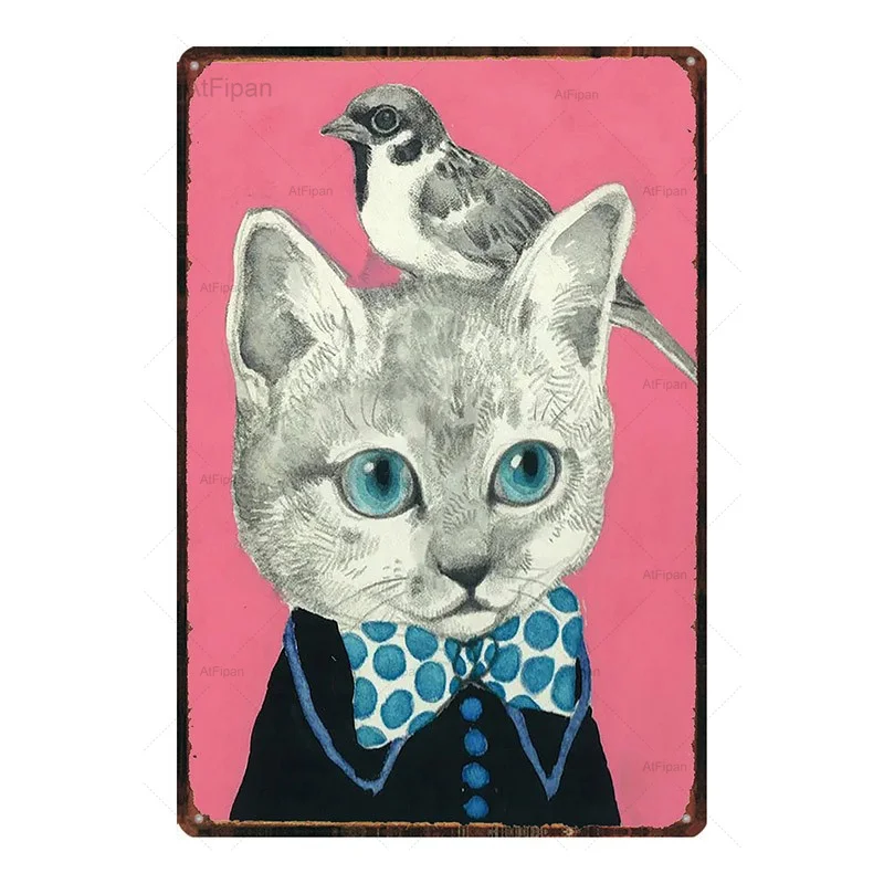 Остерегайтесь собаки, кошки, жестяной предуПредупреждение ительный знак, потертый шикарный металлический винтажный настенный художественный домашний зоомагазин, ретро украшение