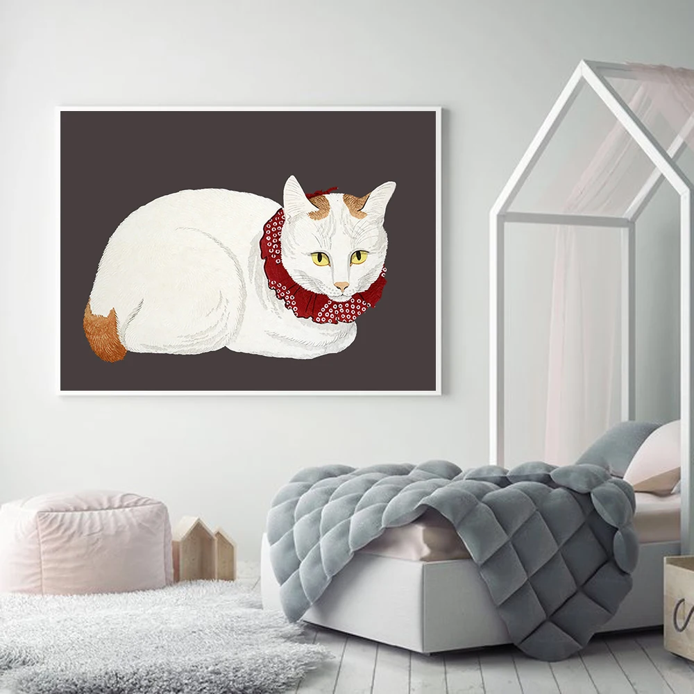 Ретро японский постер с изображением милой кошки на холсте художественная роспись спальня нордический домашний декор