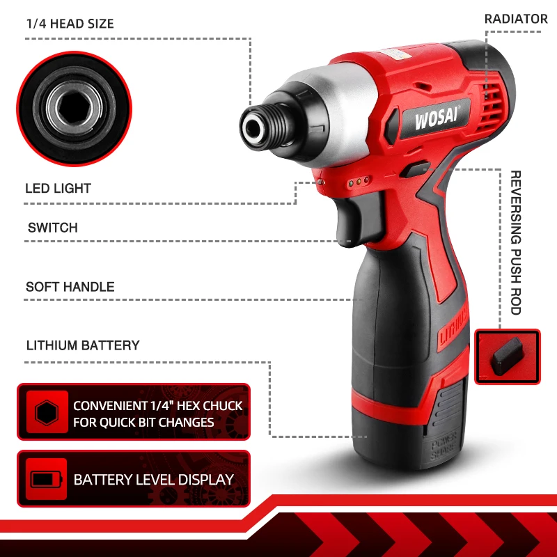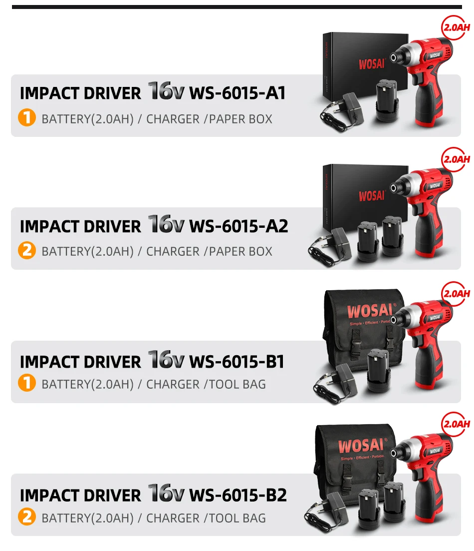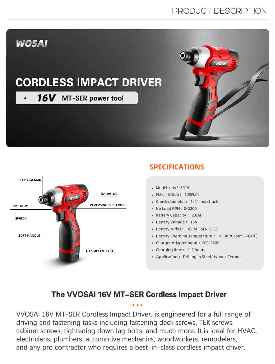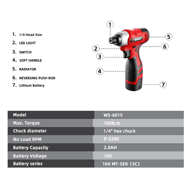 Шуруповерт WOSAI аккумуляторный, 16 В, 100 Н м, MT-SER
