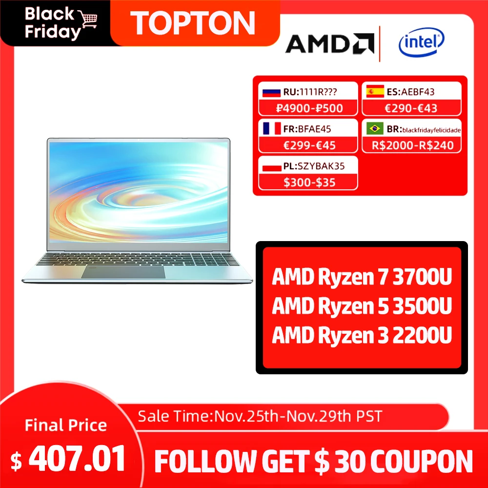 Новинка, ноутбук Topton AMD Ryzen 7 3700U 7 2700U, процессор, ноутбуки, макс. память 36 Гб DDR4, фонарь NVMe SSD, полный IPS дисплей 15,6 дюйма, легкий ПК