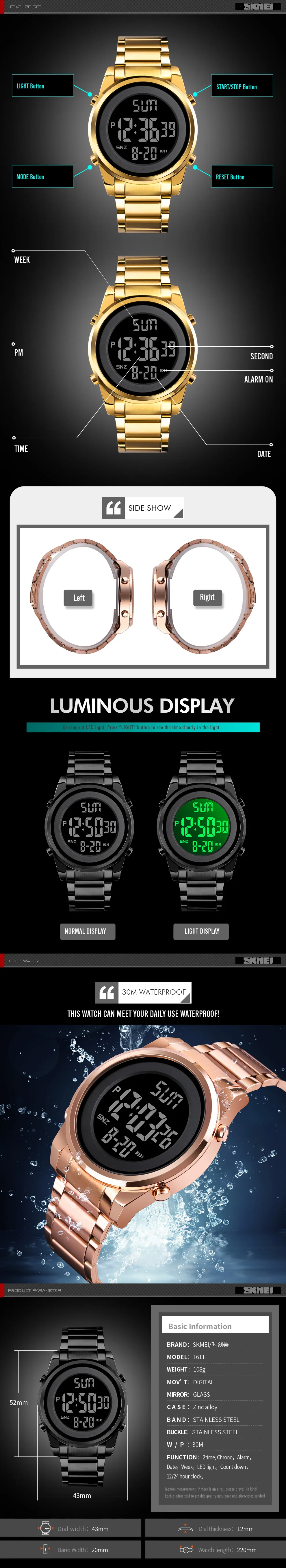 Мужские электронные часы SKMEI, цифровые часы из нержавеющей стали ...