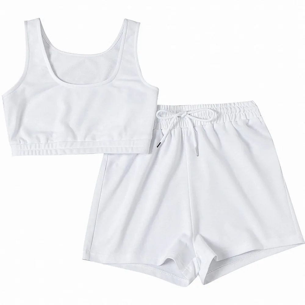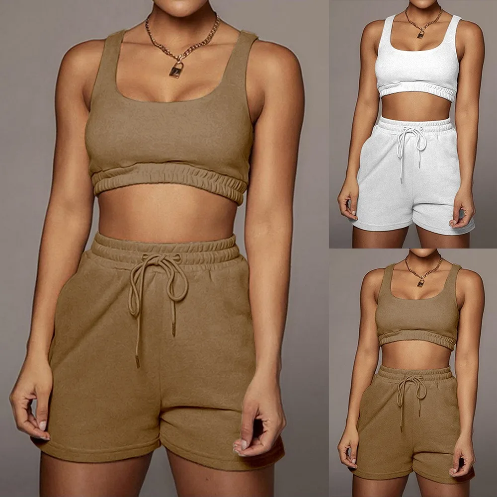 Комплект спортивной одежды LOOZYKIT Женский, Повседневный хлопковый топ без рукавов и эластичные шорты на шнуровке, спортивный костюм