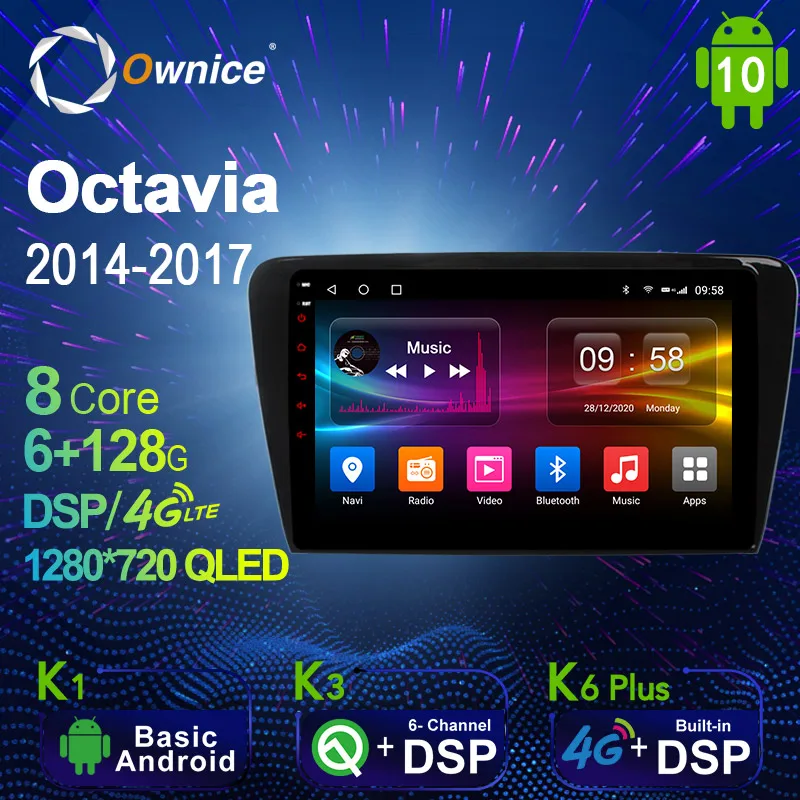 1280*720 Android 10,0 K3 K6 Plus Автомобильный мультимедийный Автомагнитола 2 Din для Skoda Octavia 2014 - 2017 4G LTE аудио GPS плеер 8 ядер
