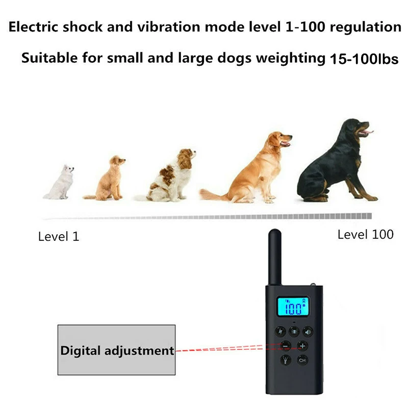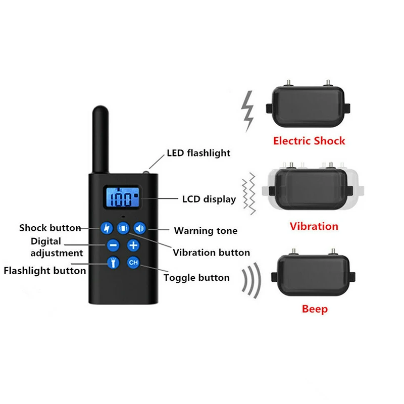 Этот тренировочный воротник поможет исправить и переобучить поведение ваших собак. Благодаря множеству уровней, вы можете настроить тип статической стимуляции, Адаптированный к вашей собаке с помощью удобного для чтения ЖК-экрана.