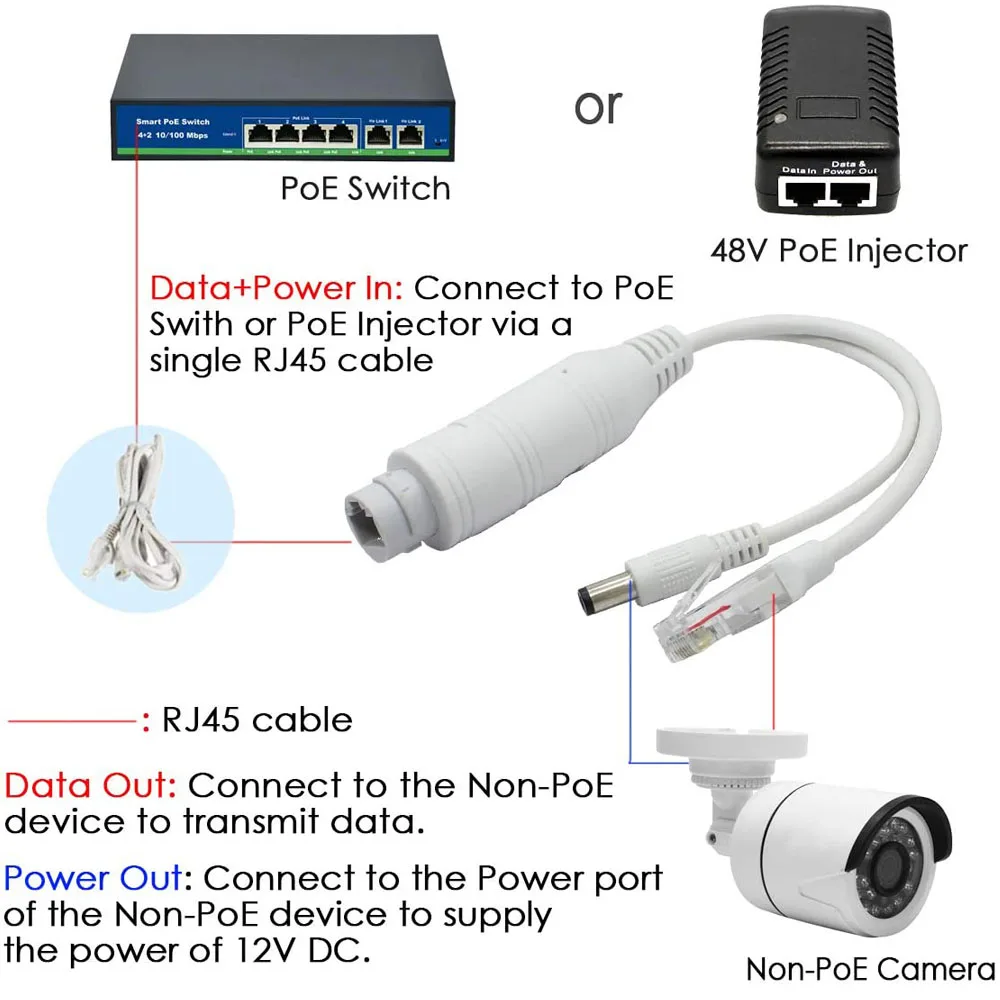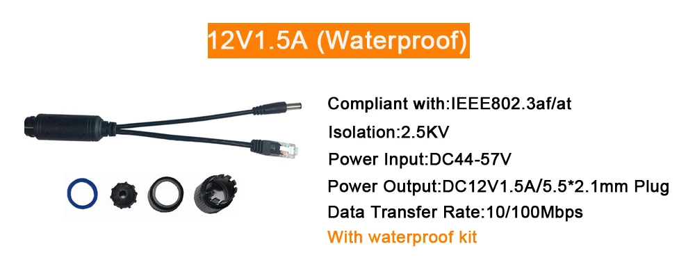 Водонепроницаемая активный сплиттер PoE 48 В до 12 в 18 Вт для IP-камеры, IP-телефона, беспроводных точек доступа и других устройств IEEE802.3afat 10100 Мбитс