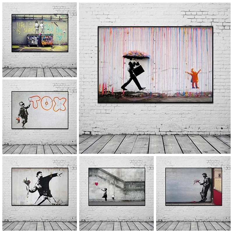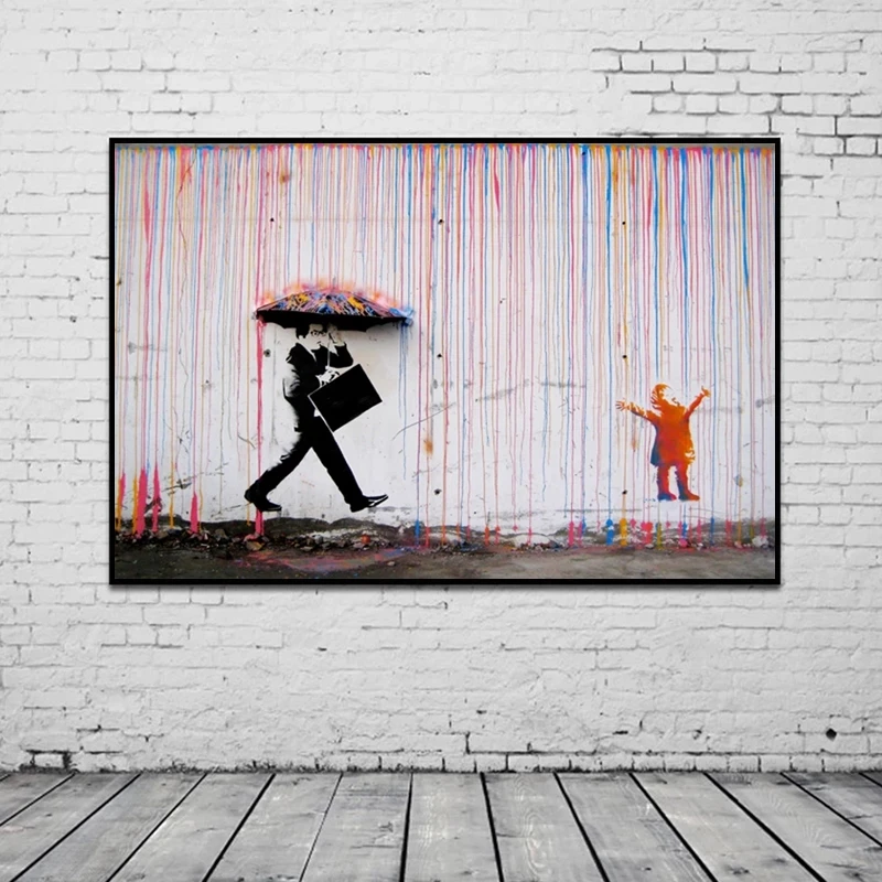 Бэнкси искусство ходьба по дождю Улица граффити настенное искусство холст картины постеры и принты на стену для декора гостиной