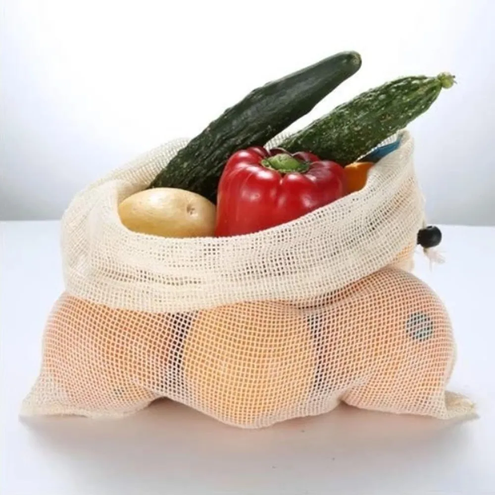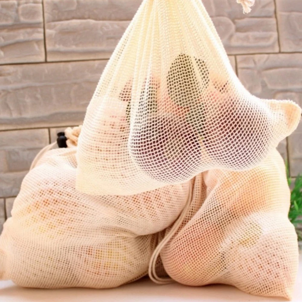Мешки для овощей из хлопчатобумажной сетки, многоразовая сумка для овощей из хлопковой сетки, сумка для хранения на кухне, фруктовые овощи с Кулиской