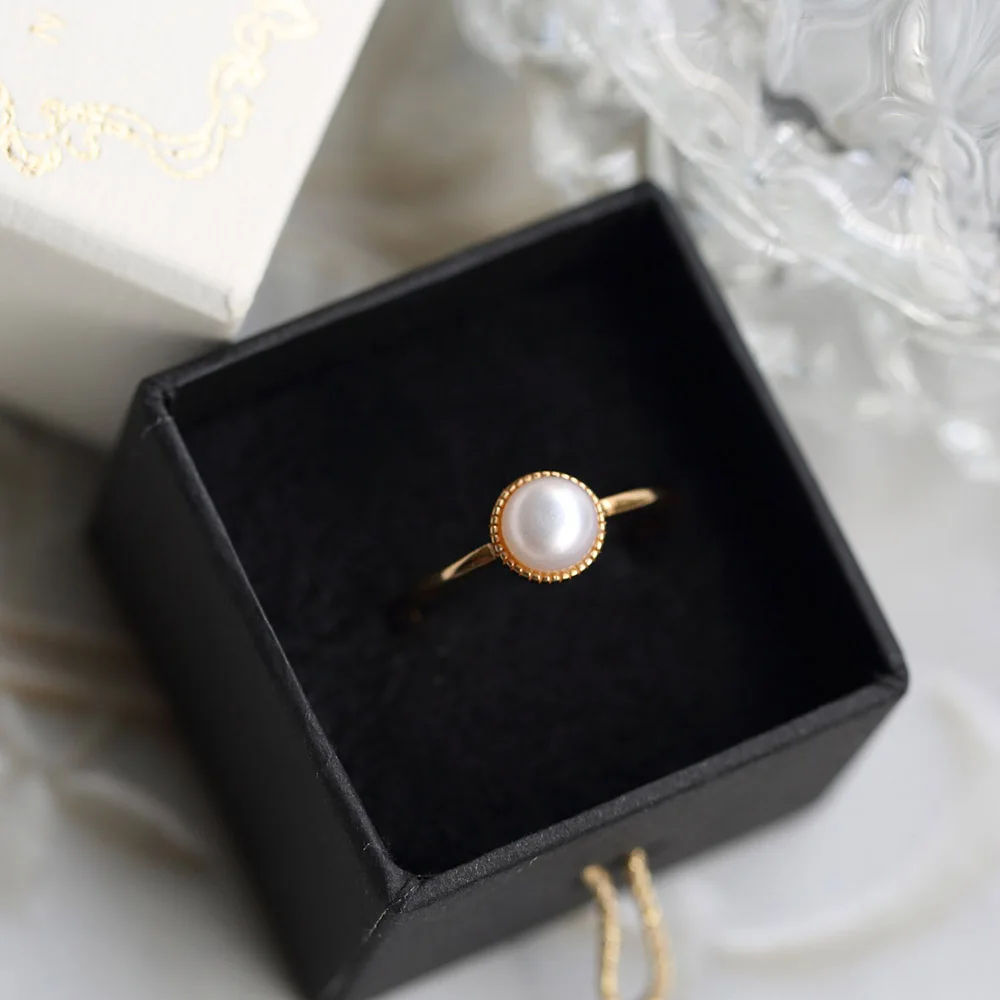 LAMOON натуральный пресноводный жемчуг 925 Серебряное кольцо для женщин в стиле ретро Обручальное кольцо 14K светильник позолоченные ювелирные украшения RI164