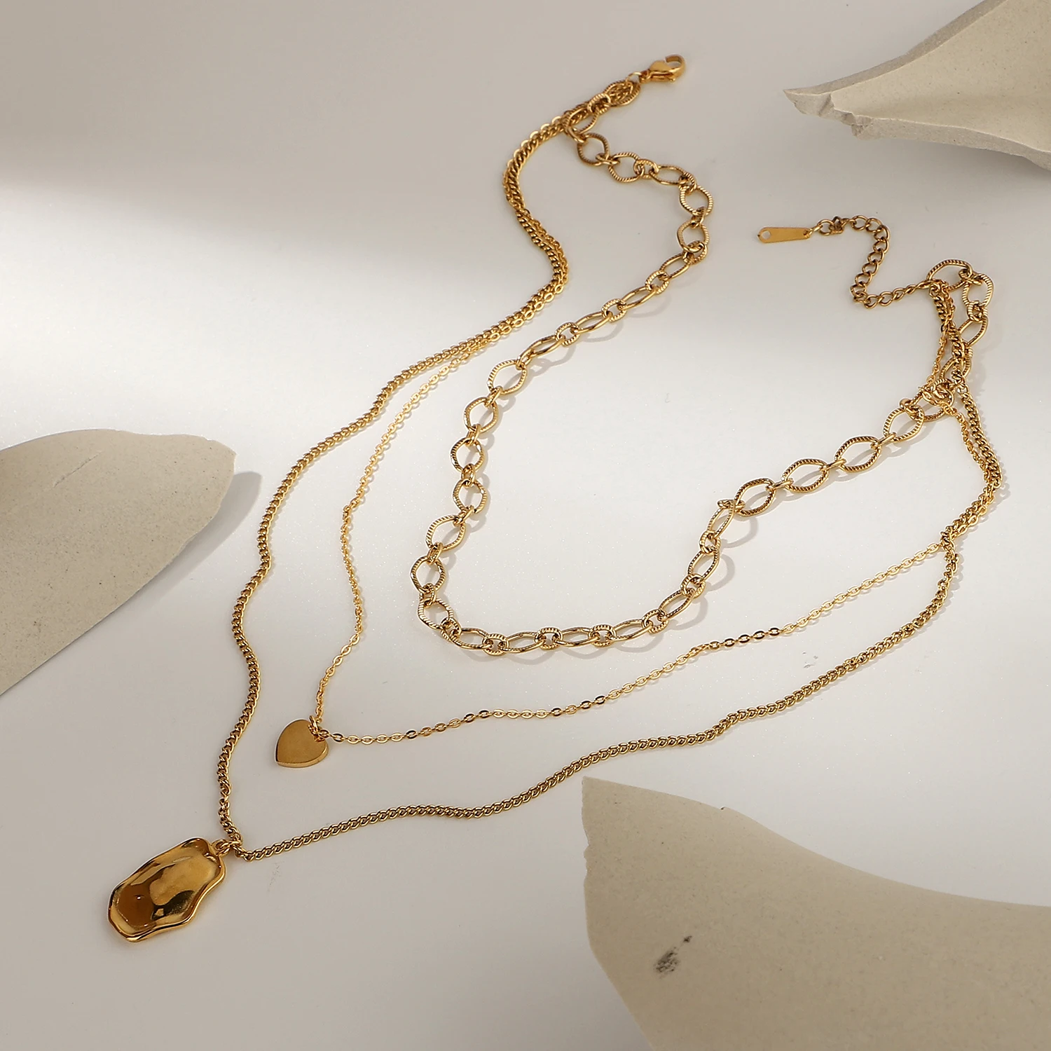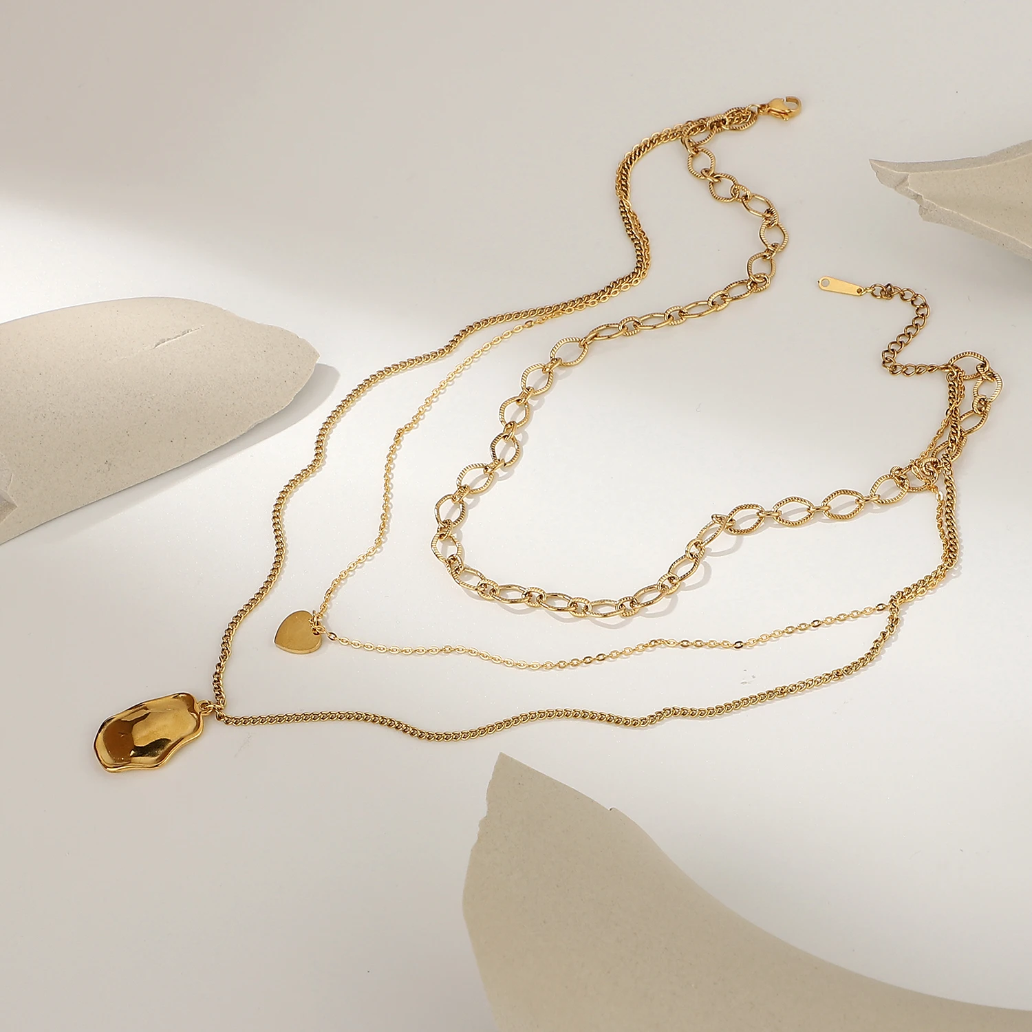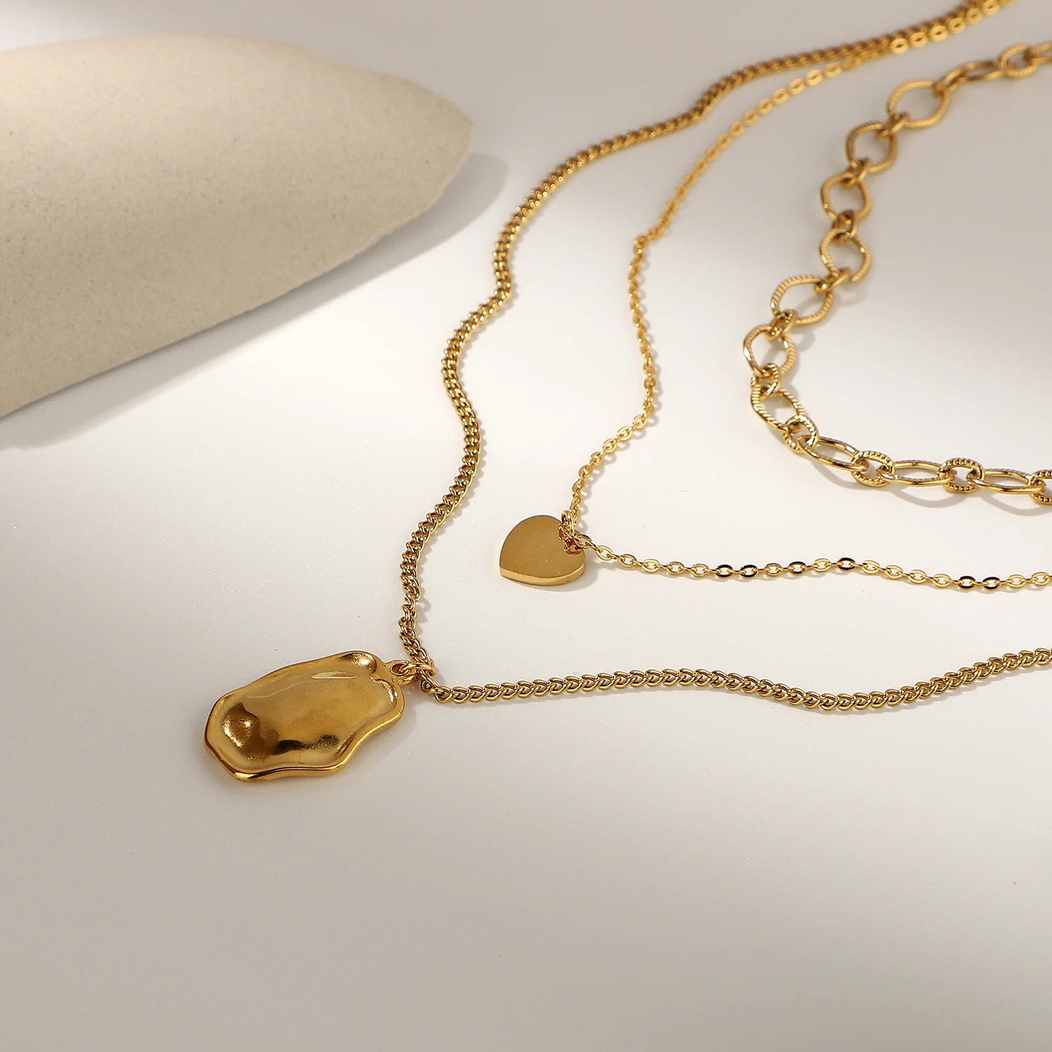 18K, позолота, нержавеющая сталь, три многослойное ожерелье для женщин, модное ювелирное изделие сердце диск Шарм неправильные геометрические ожерелья