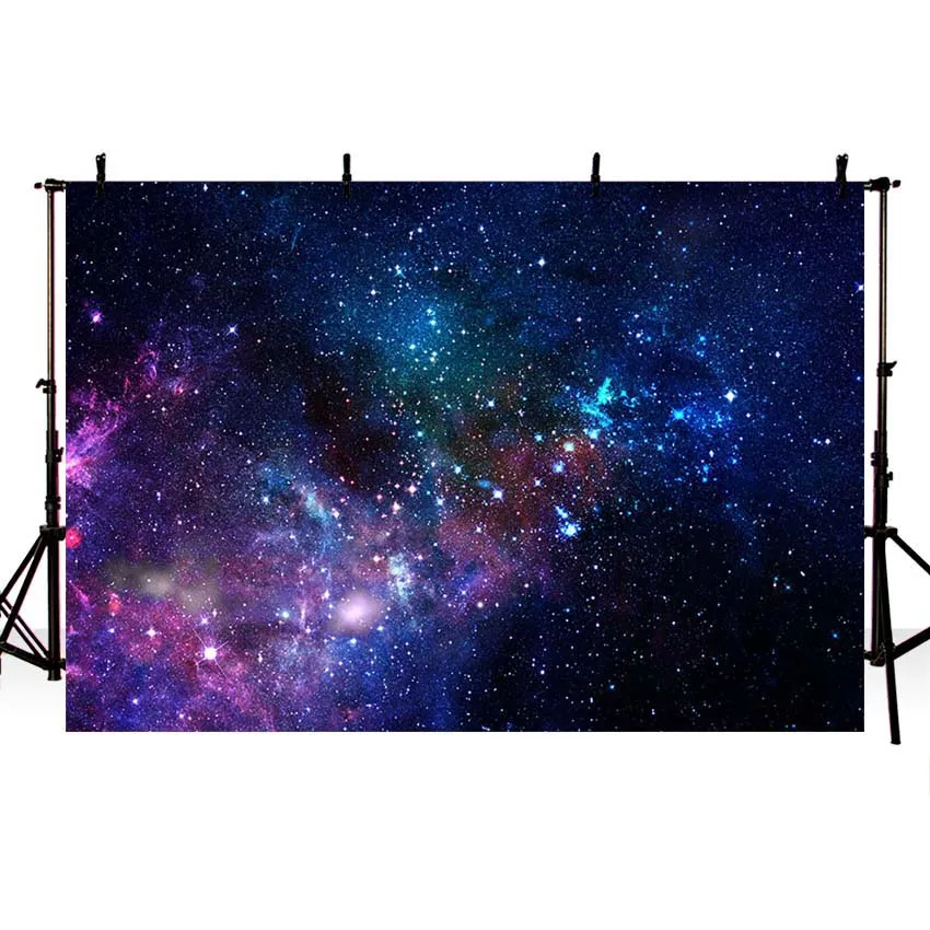 Фон для фотосъемки с изображением галактики звездного неба синего цвета ночного видения