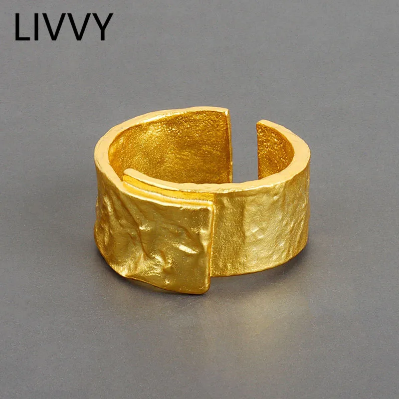 Модное серебристое кольцо LIVVY 2021 года, Европейское кольцо с геометрическим узором в стиле ретро, Открытое кольцо