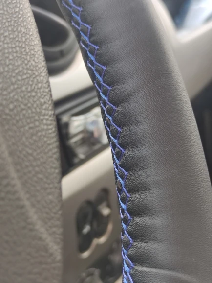 Замовлення прийшло за 1 місяць. Дуже гарно запаковано, в комплекиі було 2 голки і 2 мотки ниток. Використала тільки один. Тепер про сам товар, дуже гарний і якісний. Кермо настільки приємне стало. Виглядає гарно. Обшивається досить швидко. Задоволена і рекомендую на 100 %. Ціна як на таку річ, дуже низька.