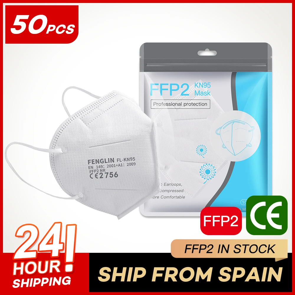 50 шт., 5-слойная маска FFP2, сертификация ЕС, Mascarillas FPP2, одобренная гигиеническая защитная маска для рта KN95, многоразовый респиратор, FFP2MASK