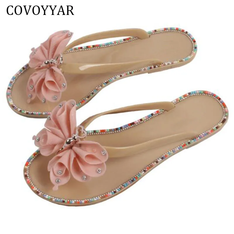 Шлепанцы COVOYYAR женские на плоской подошве, сланцы, пляжная обувь с бабочками, богемные, бисером, летние тапочки, WSL214