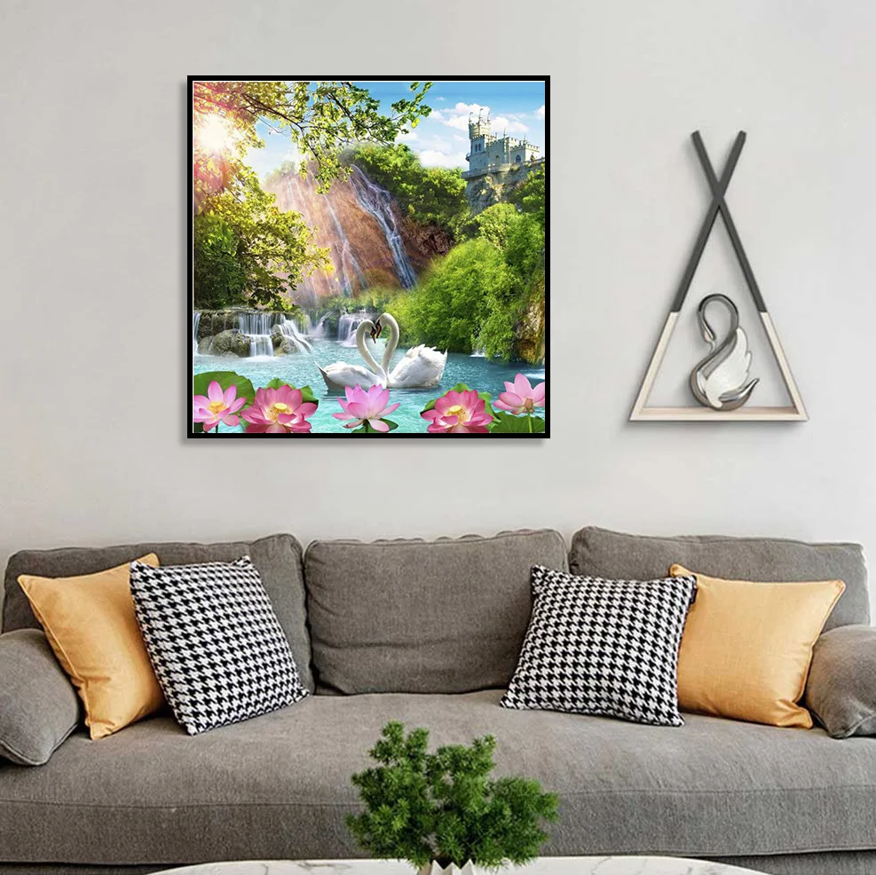 EverShine 5D алмазов картина камни в форме ромба водопада Вышивка крестом Алмазная мозаика лебедь картина Стразы арт Наборы домашний декор