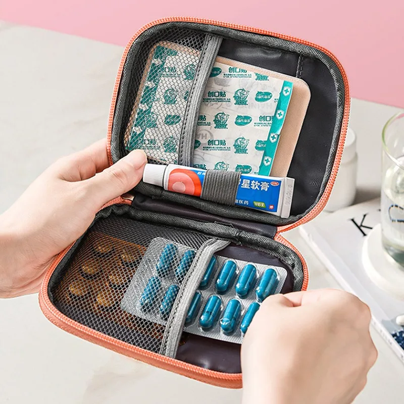 Отделения внутри, сетчатый карман на молнии, удобный для фиксации лекарств в бутылках