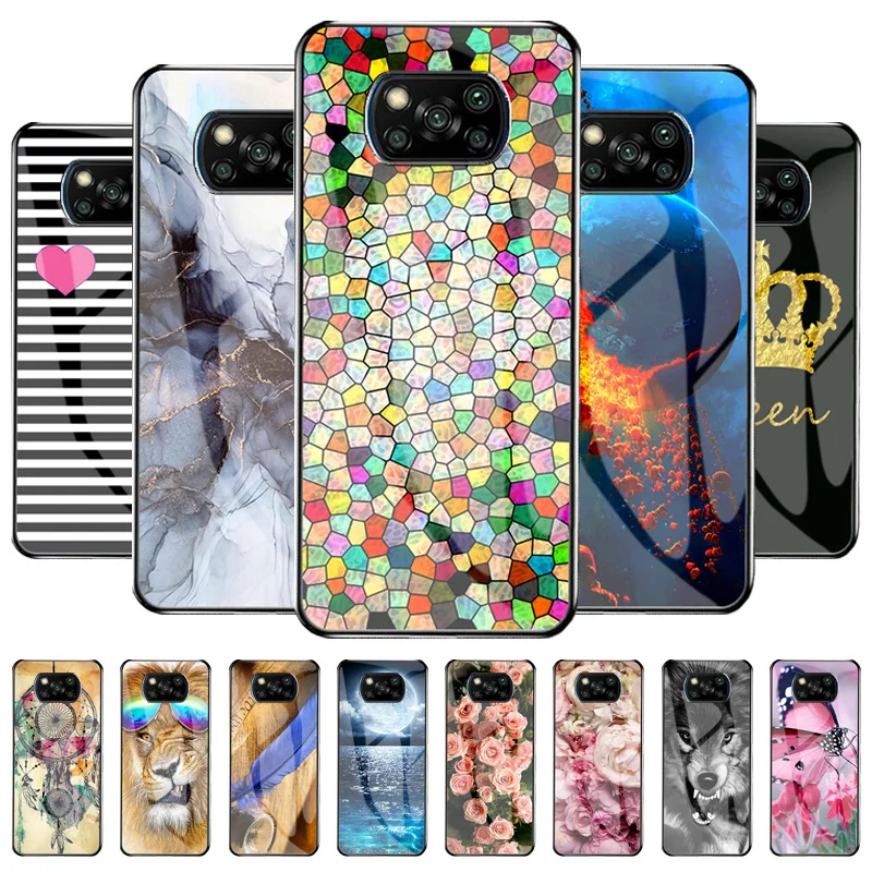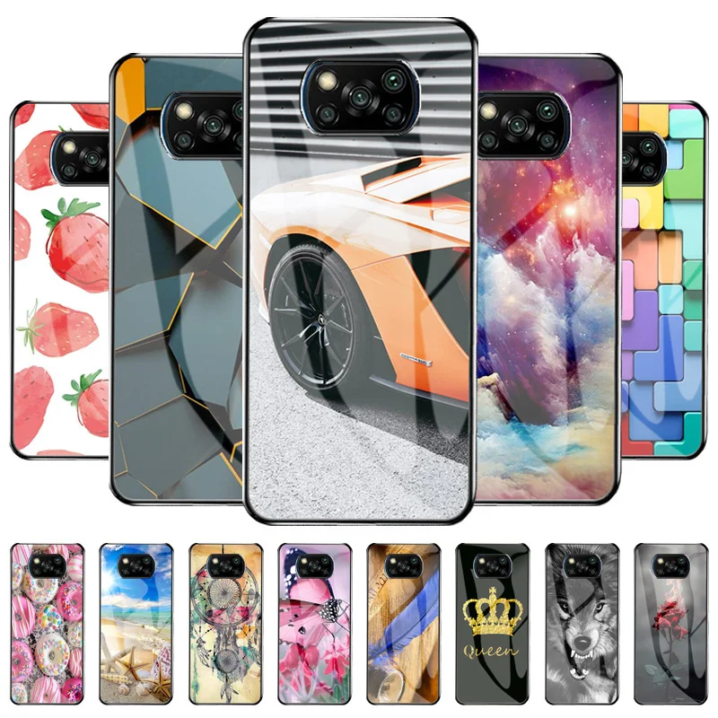 Чехол для телефона Xiaomi Poco X3 Pro, чехол для Xiaomi Poco X3 NFC Pocophone X 3, бампер из закаленного стекла, Жесткий Чехол, мультяшный чехол