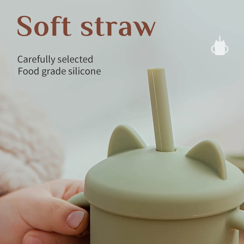 Детская чашка для кормления, 150 мл, милая чашка для кошки, пищевая, BPA, Бесплатная, силиконовая, обучающая посуда для детей, мягкая соломенная чашка, детский продукт
